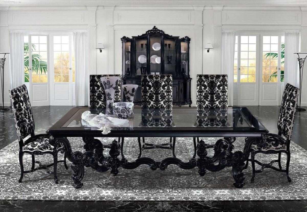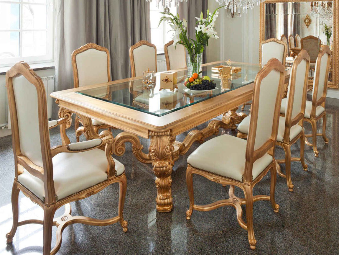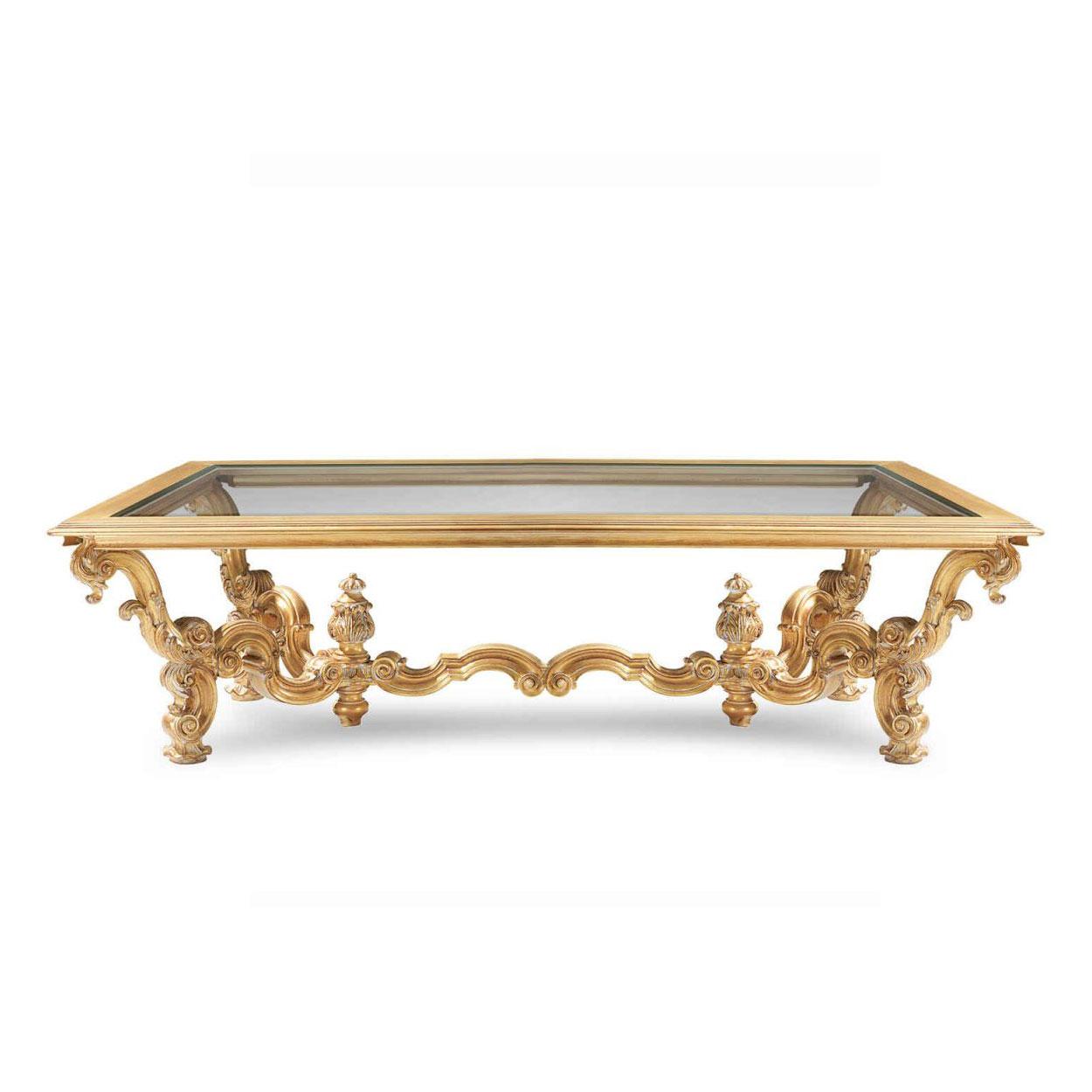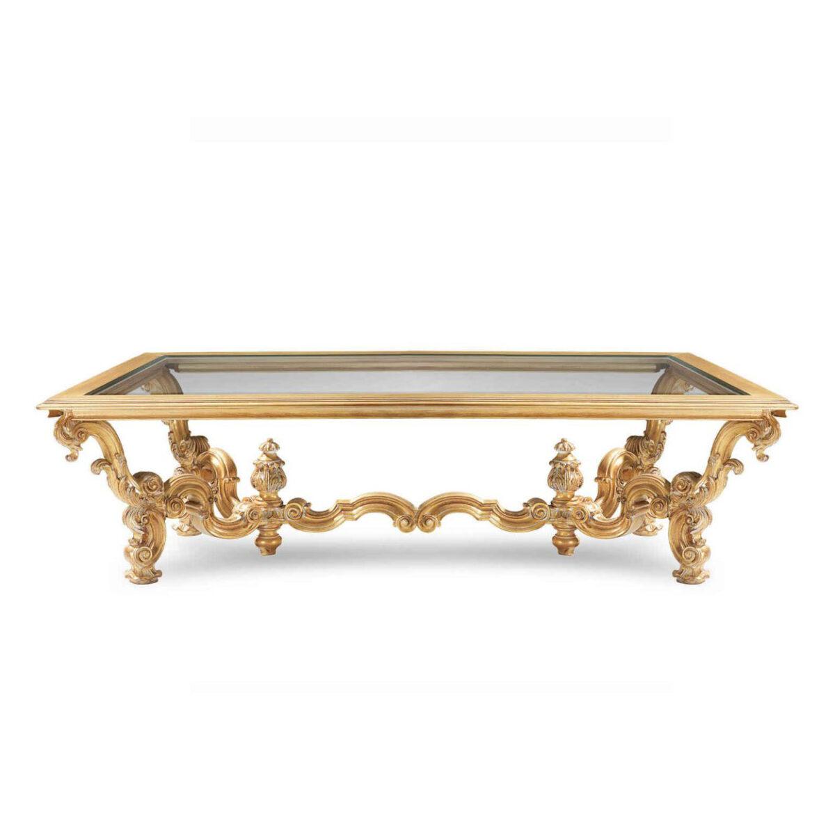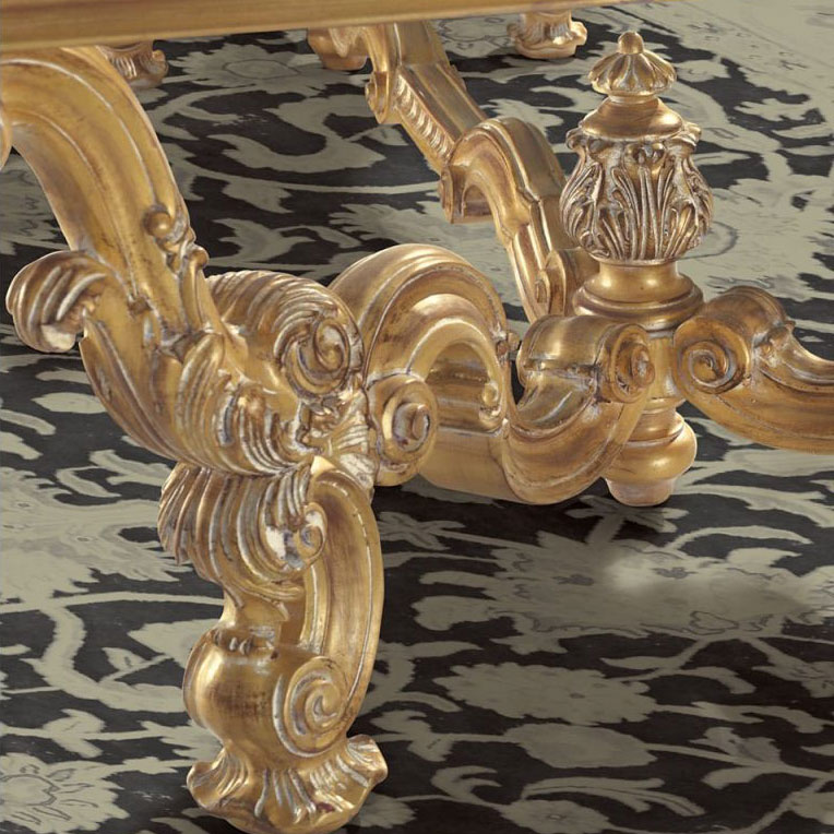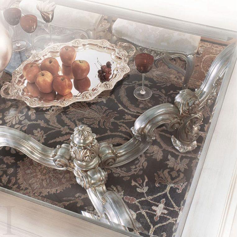 The Van Gogh Baroque table with glass top is a work of art with impeccable details. Its completely hand-carved cross structure makes it the undisputed protagonist of the room.