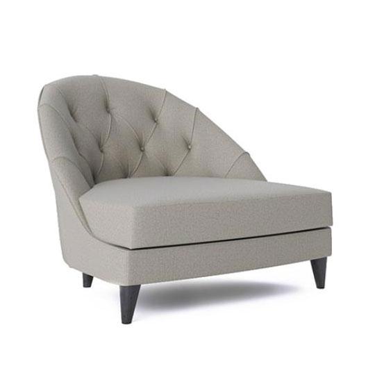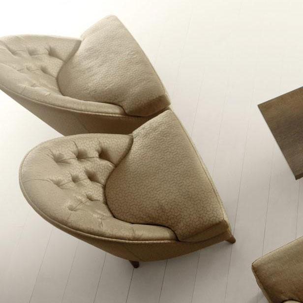 Dalila is a collection of rounded, comfortable profiles that encourage total relaxation, alongside button tufting that shows the chair’s charming, contemporary proportions at their best. The wood frame is almost completely hidden by the soft padding, but is visible at the feet.