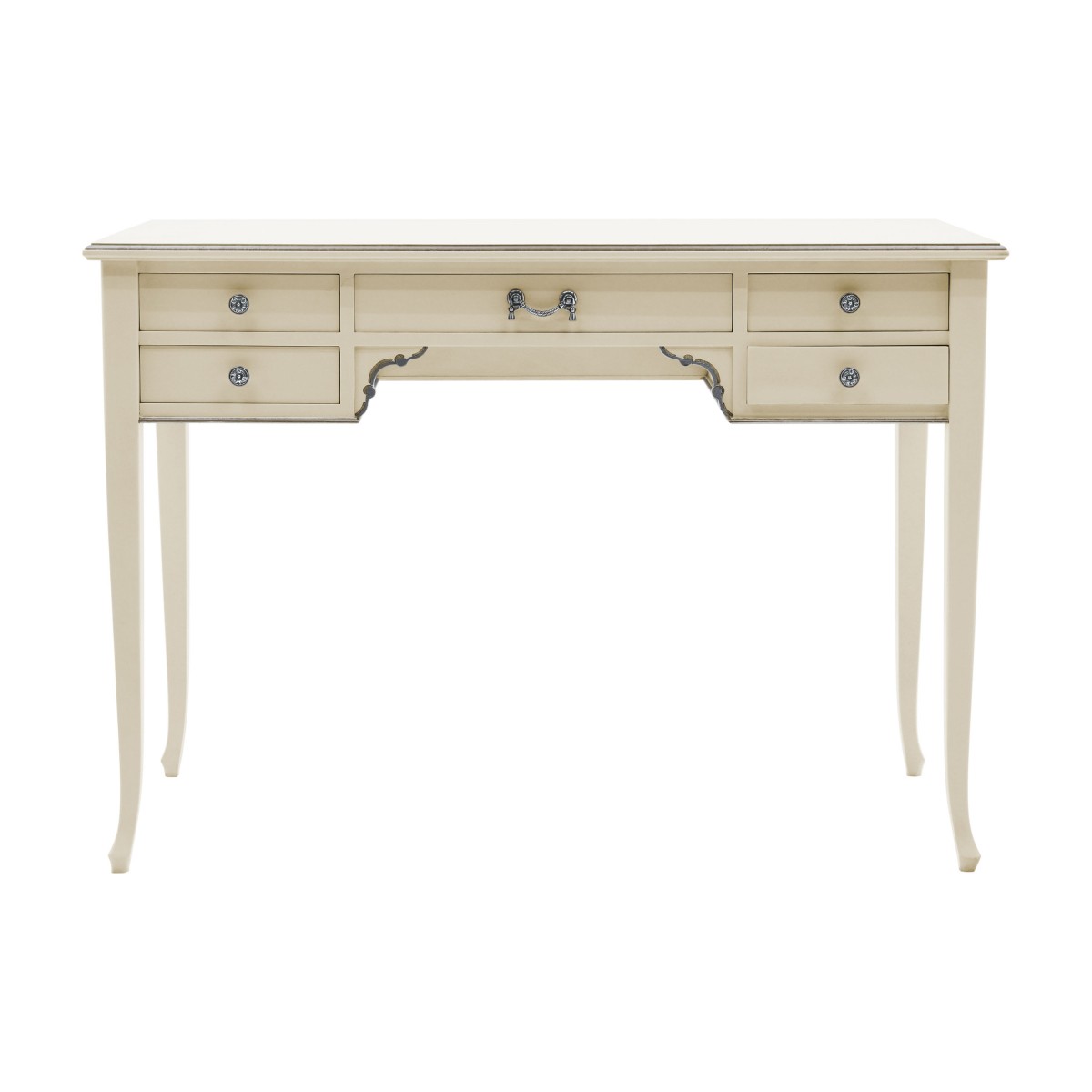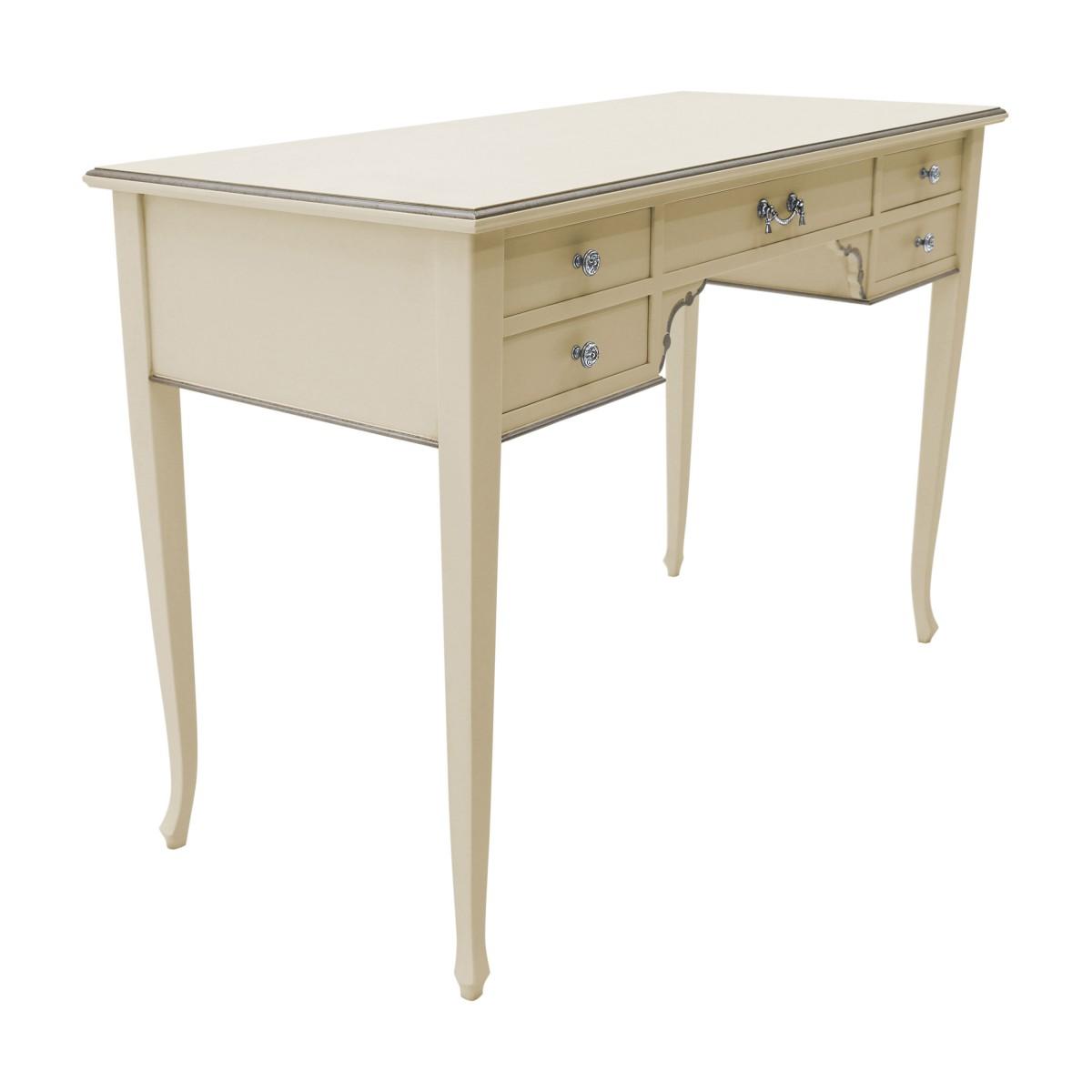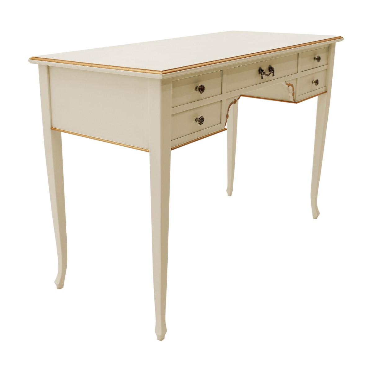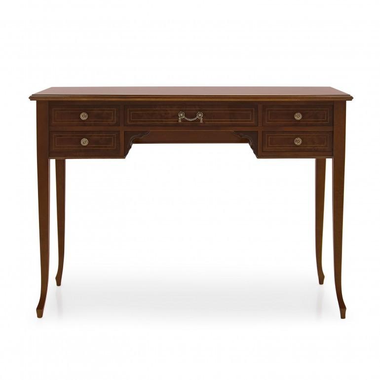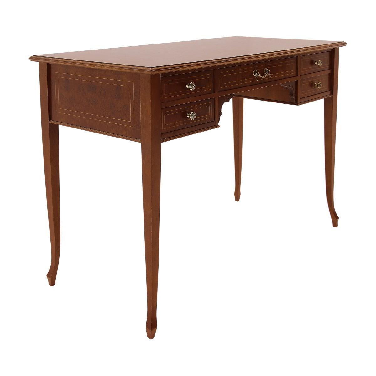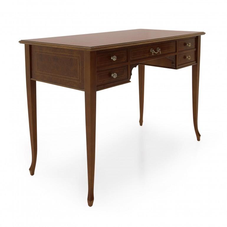 Elegant Directoire style beech wood writing desk. It features several inlays and the surface is almost entirely covered with briarwood veneer. It features five drawers and we recommend a polished finish that allows the grain of the briarwood to show through.