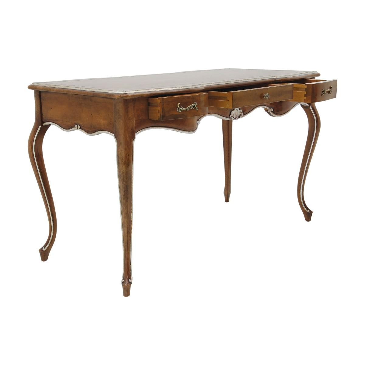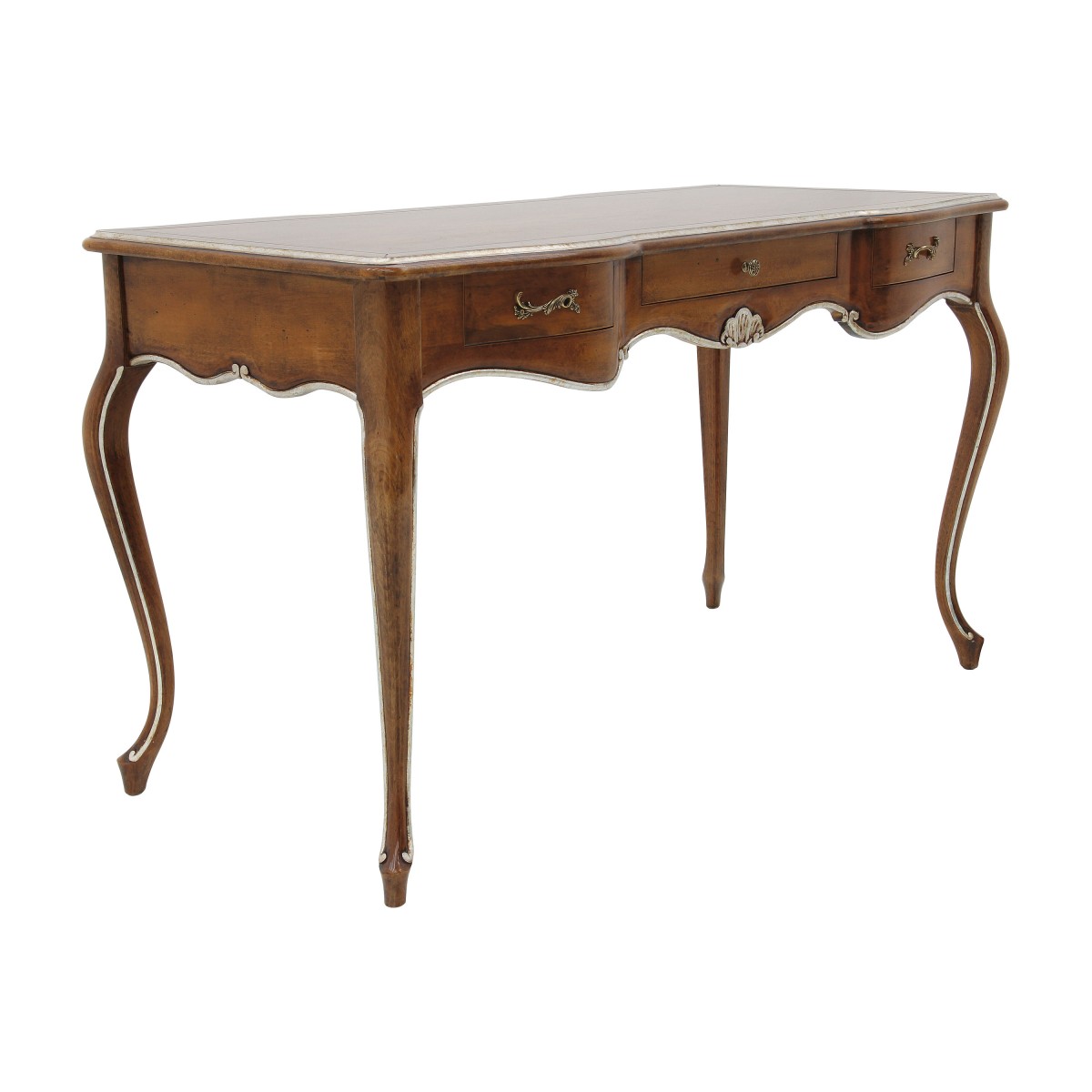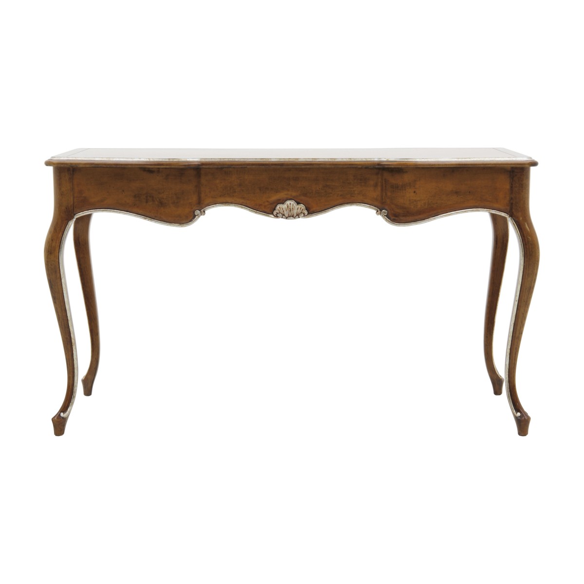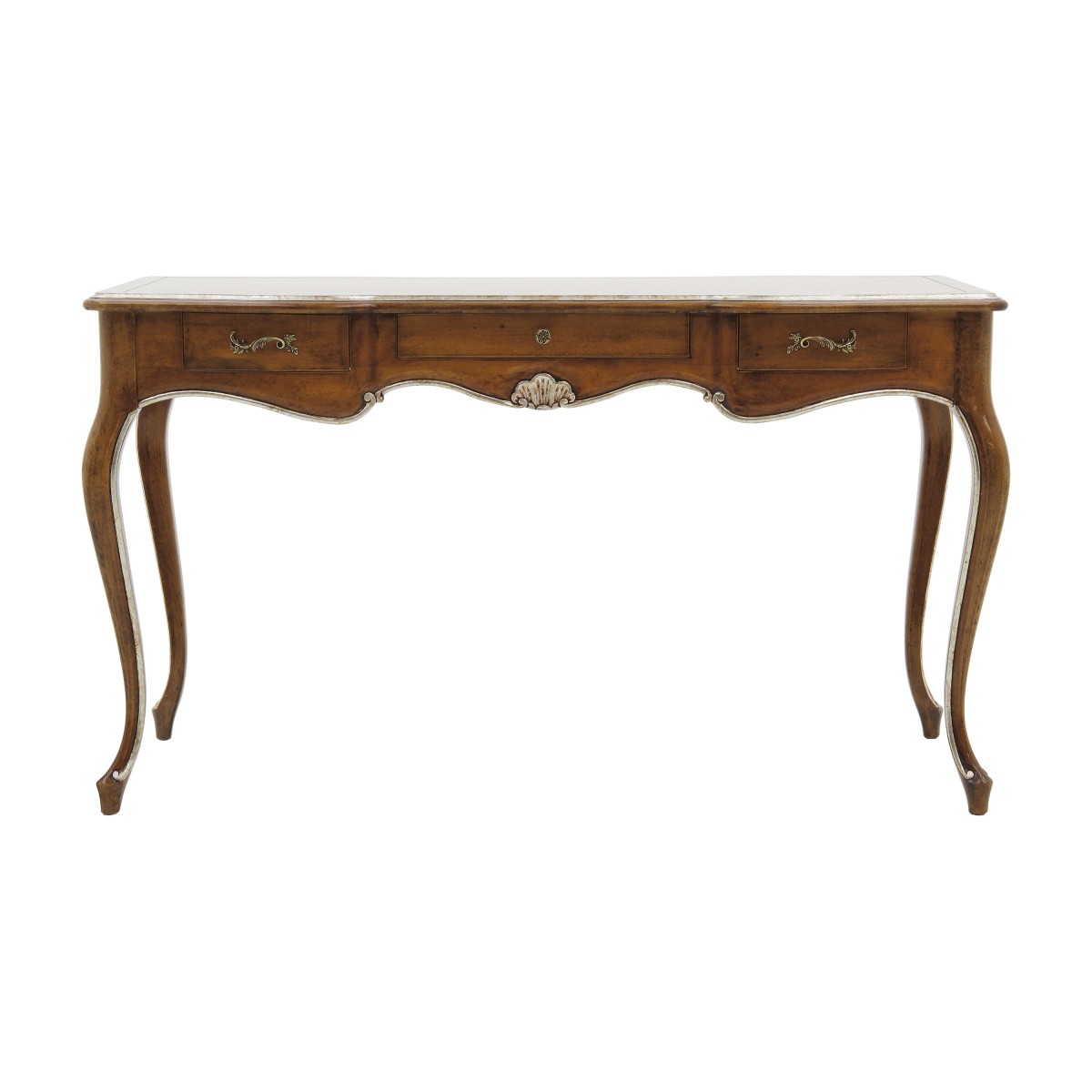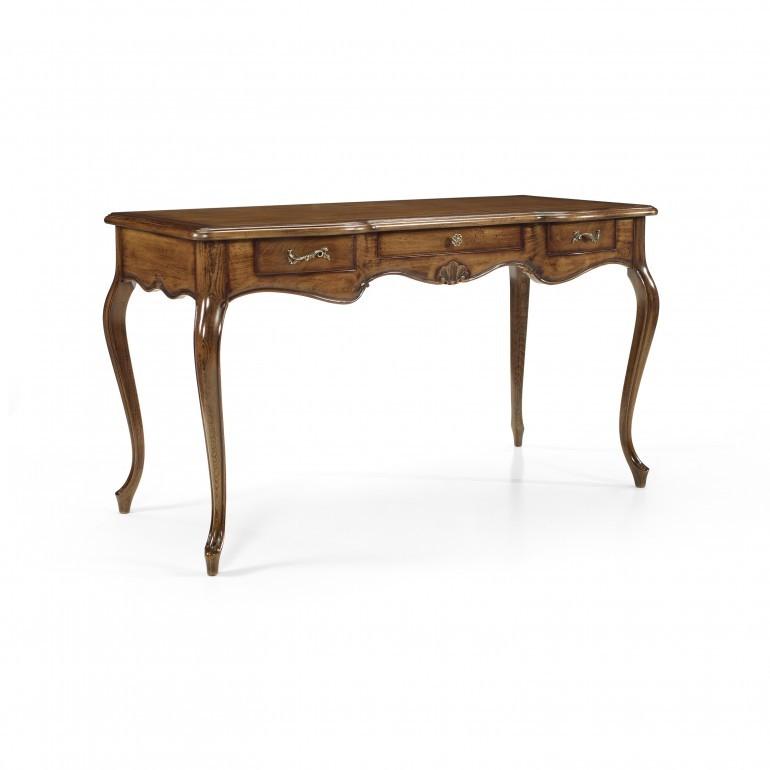 Elegant classic style writing table with beech wood structure. It features three drawers and distinguishing sinuous lines. The elegant shape can be enhanced with a gold or silver leaf lacquer finish.