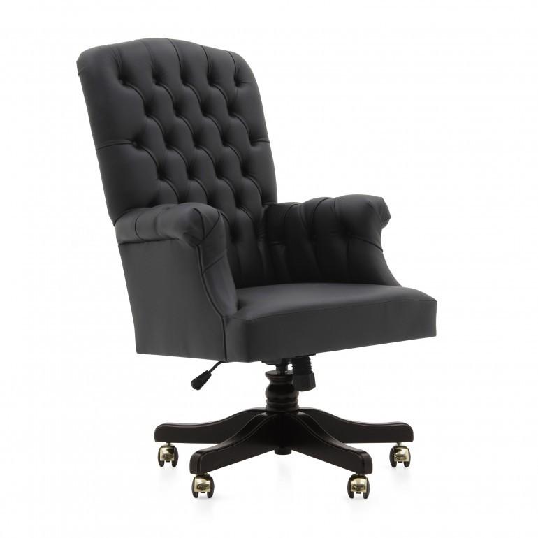 Elegant Classic style executive office armchair with beech wood structure and linear almost austere appearance. The seat height is adjustable from a minimum of 50 cm to a maximum of 58 cm. It is padded with webbing and superior quality foam. The deep-buttoned upholstery is a standard feature that particularly enhances the luxuriousness of this model.