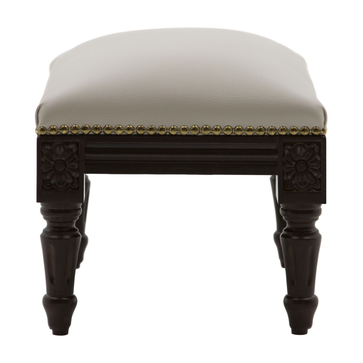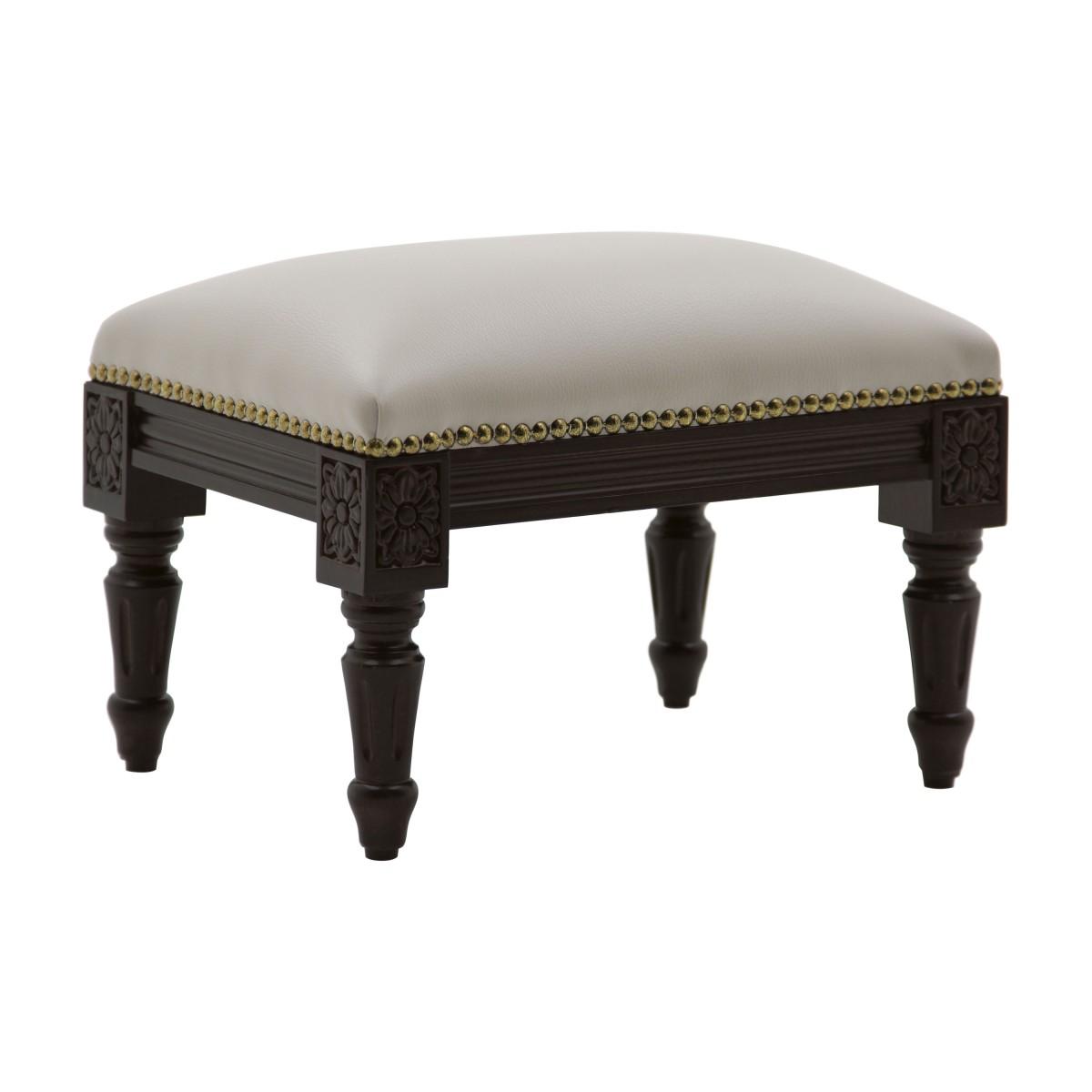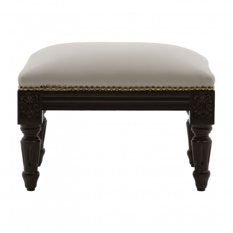 Elegant ottoman with lines reminiscent of the Louis XVI style, with rectangular beech wood structure. It is upholstered with webbing and superior quality foam. The upholstery can be customized with nails, braiding, double welt or welt.