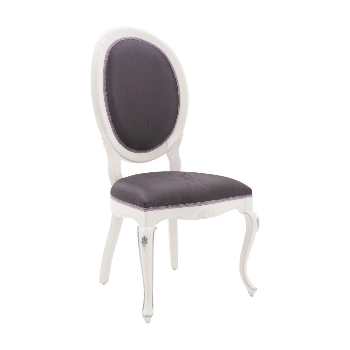 Armonia classic style chair with beech wood structure and particularly elegant lines. With a wide and very comfortable padded back. The seat is padded with webbing and superior quality foam. The upholstery can be customized with nails, braiding, double welt or welt.