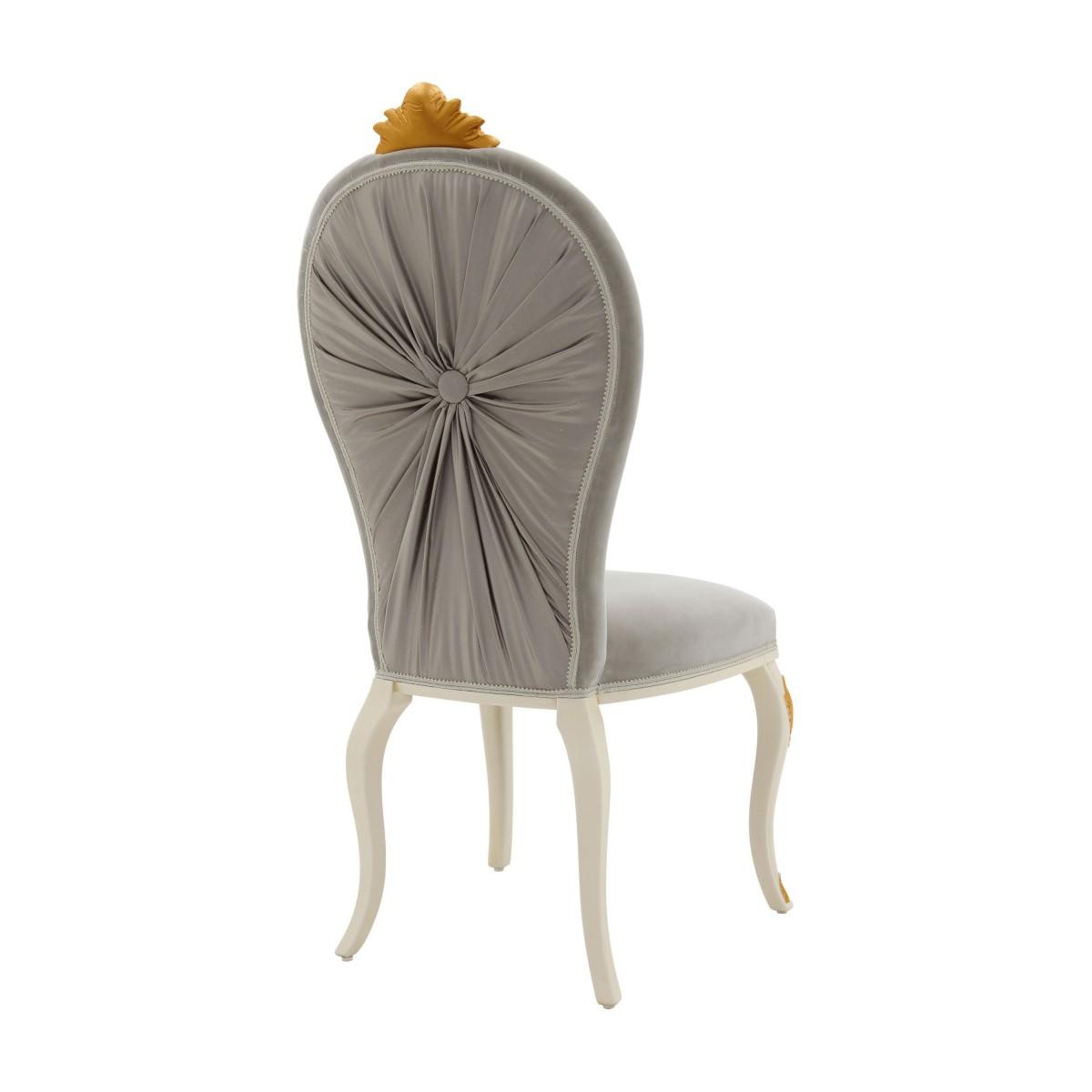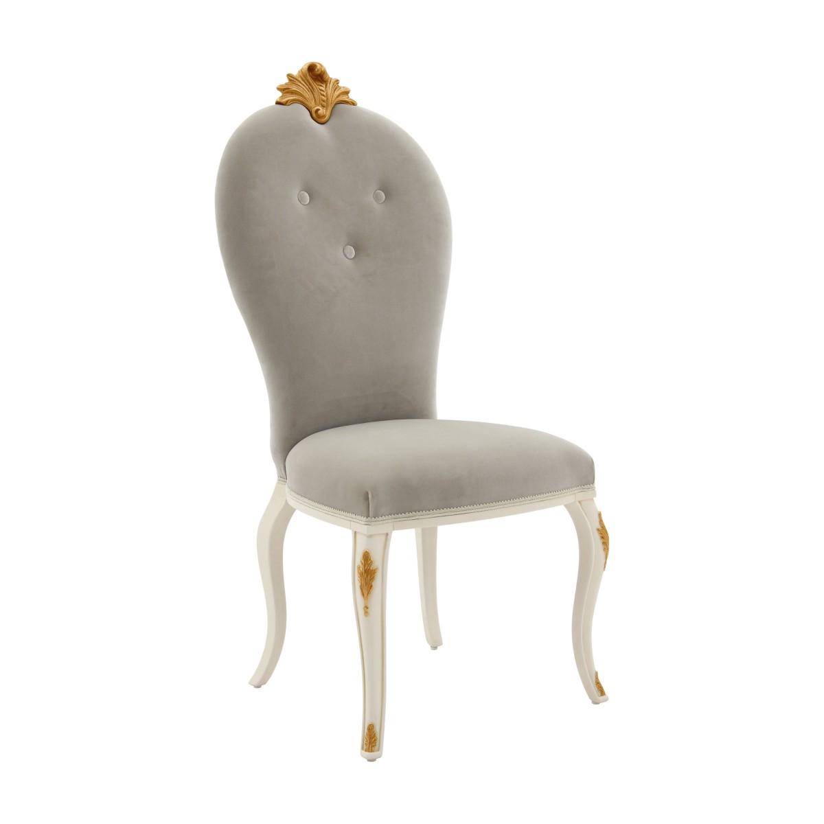 Aster is a classic replica chair, with elegant baroque carvings and a solid beech wood structure. The carvings may be embellished by a rich silver leaf or gold leaf. The seat is wide and comfortable, padded with webbing and superior quality foam. For the upholstery we offer a wide selections of fabrics, leathers and eco-leathers.