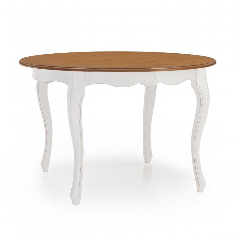 Elegant round wooden table that can be easily combined with classic Louis Philippe style furniture. The carvings on the legs and on the side band can be enhanced with a silver or gold leaf lacquer finish. It features an extendable top as standard version.