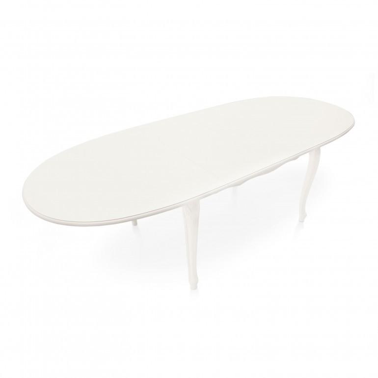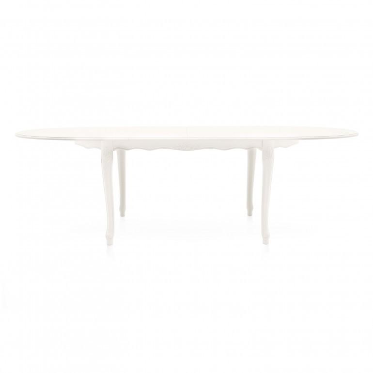 Elegant oval wooden table that can be easily combined with classic Baroque style furniture. The carvings on the legs and on the side band can be enhanced with a silver or gold leaf lacquer finish. It is also available in the version with extendable top.