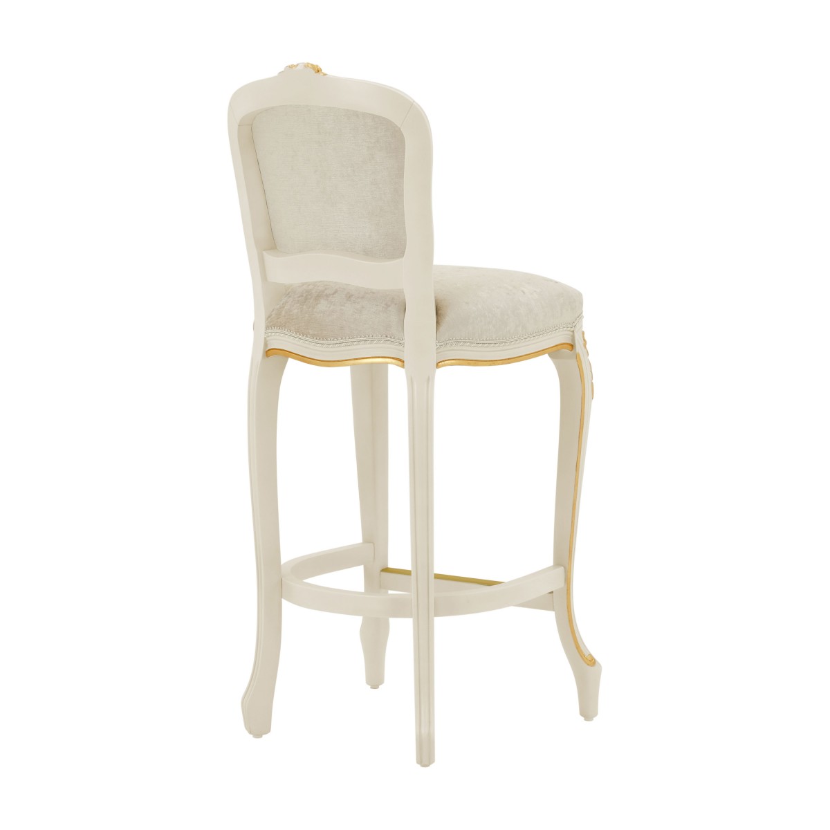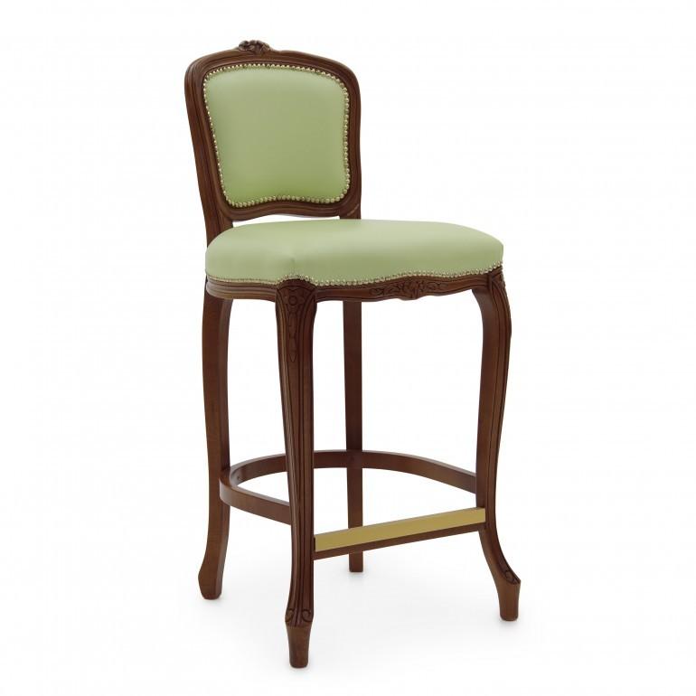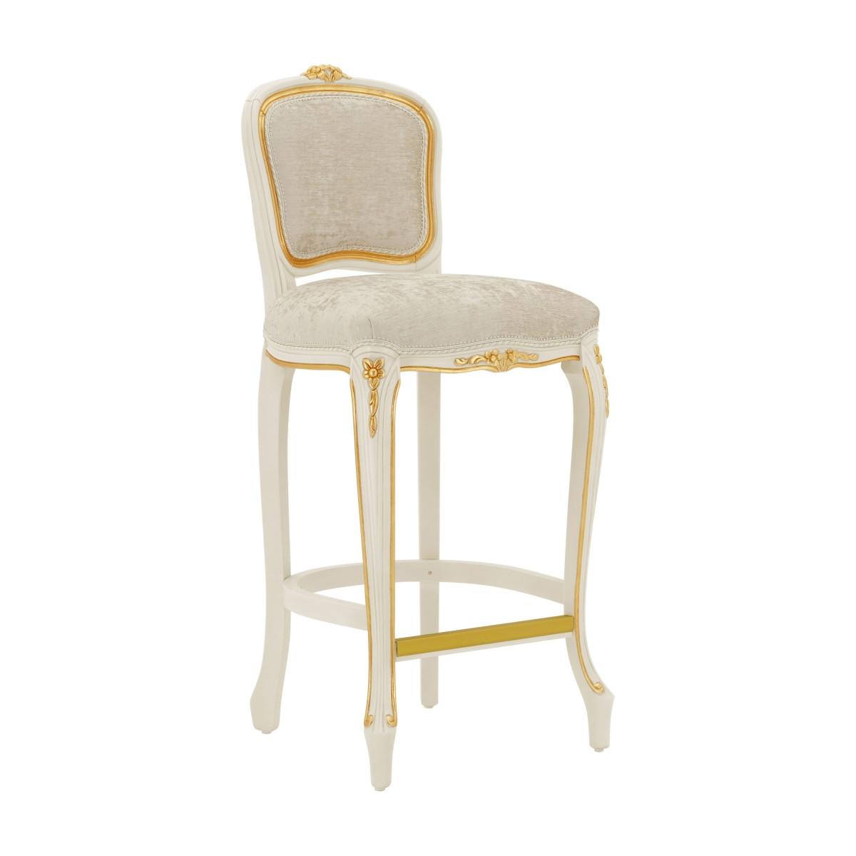 Elegant Louis XV style counter stool with classic lines and beech wood structure. The seat is padded with webbing and superior quality foam. The upholstery can be customized with nails, braiding, double welt or welt.