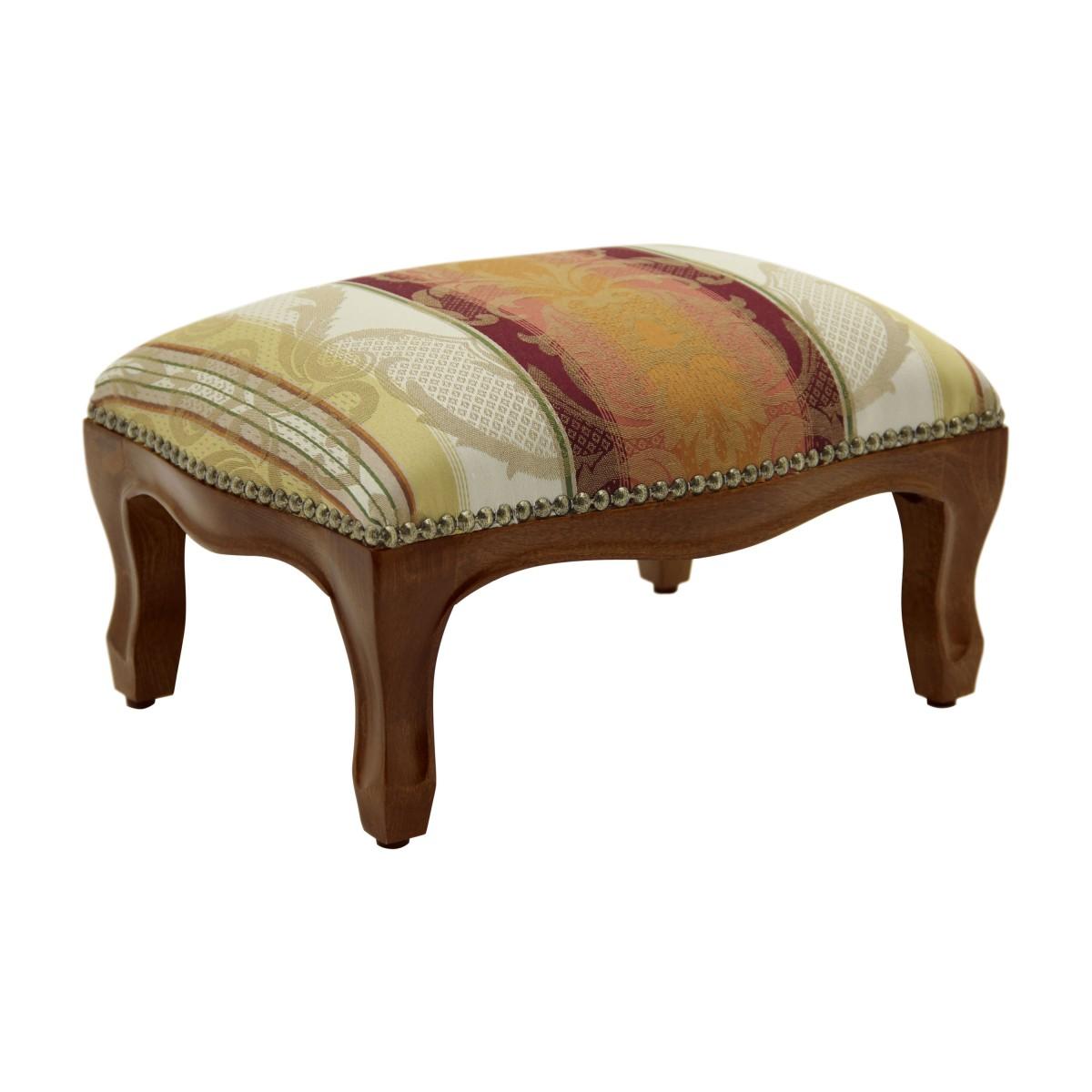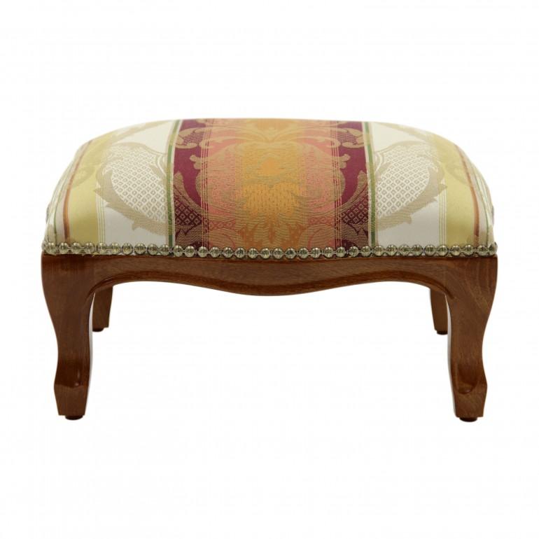 Elegant Classic style ottoman with oval shaped beech wood structure. It is upholstered with webbing and superior quality foam. The upholstery can be customized with nails, braiding, double welt or welt.