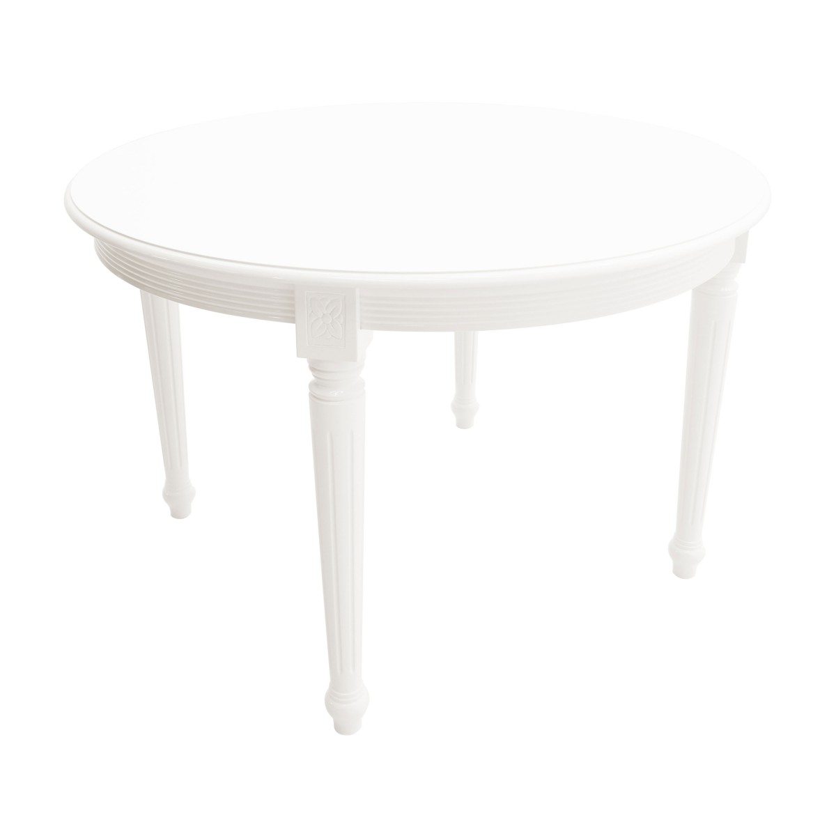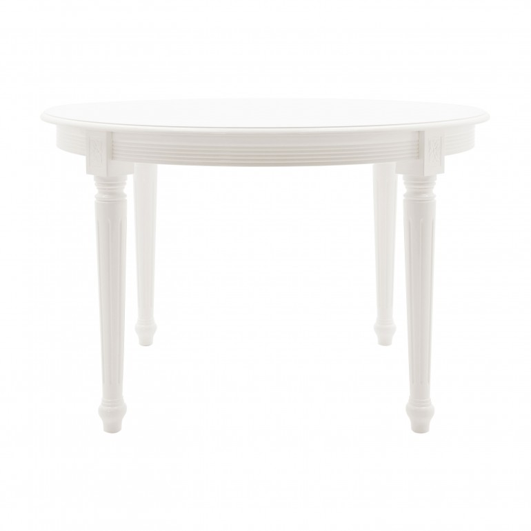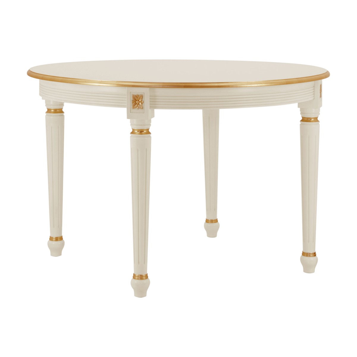 Elegant round wooden table that can be easily combined with classic Louis XVI style furniture. The carvings on the legs and on the side band can be enhanced with silver or gold leaf lacquer finish. It is also available in the version with extendable top.