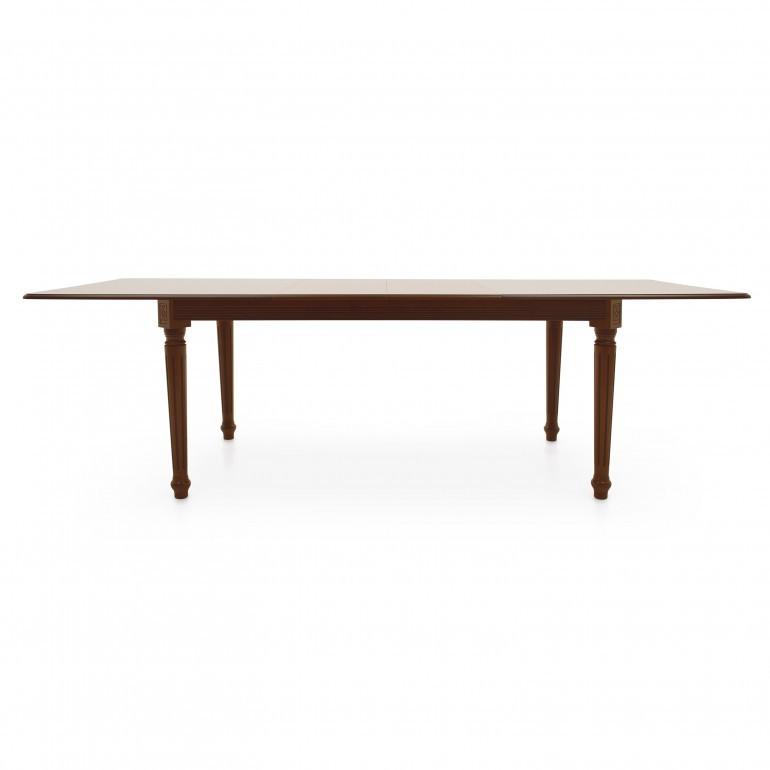 Elegant rectangular wooden table that can be easily combined with classic Louis XVI style furniture. The carvings on the legs and on the side band can be enhanced with a silver or gold leaf lacquer finish. It is also available in the version with extendable top.