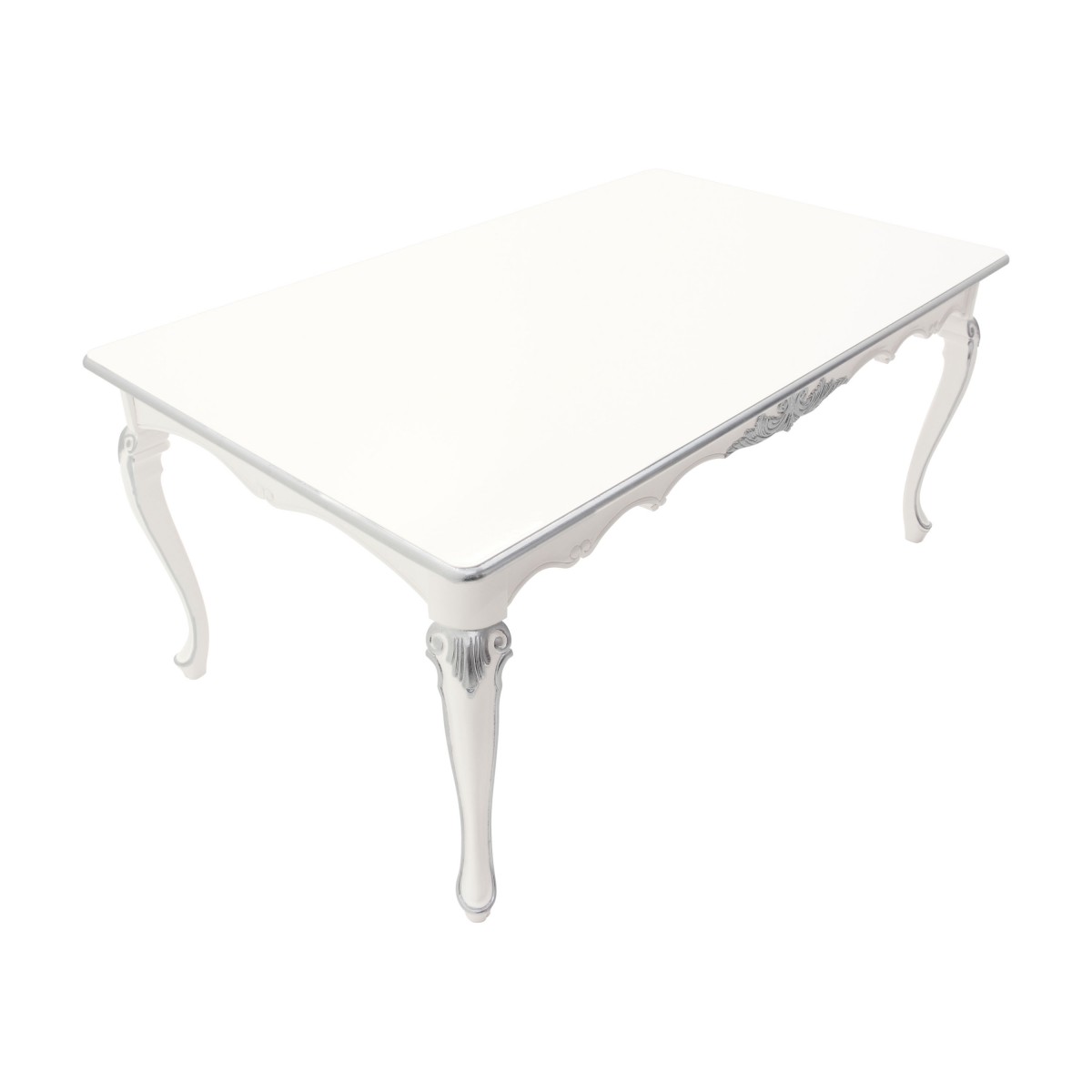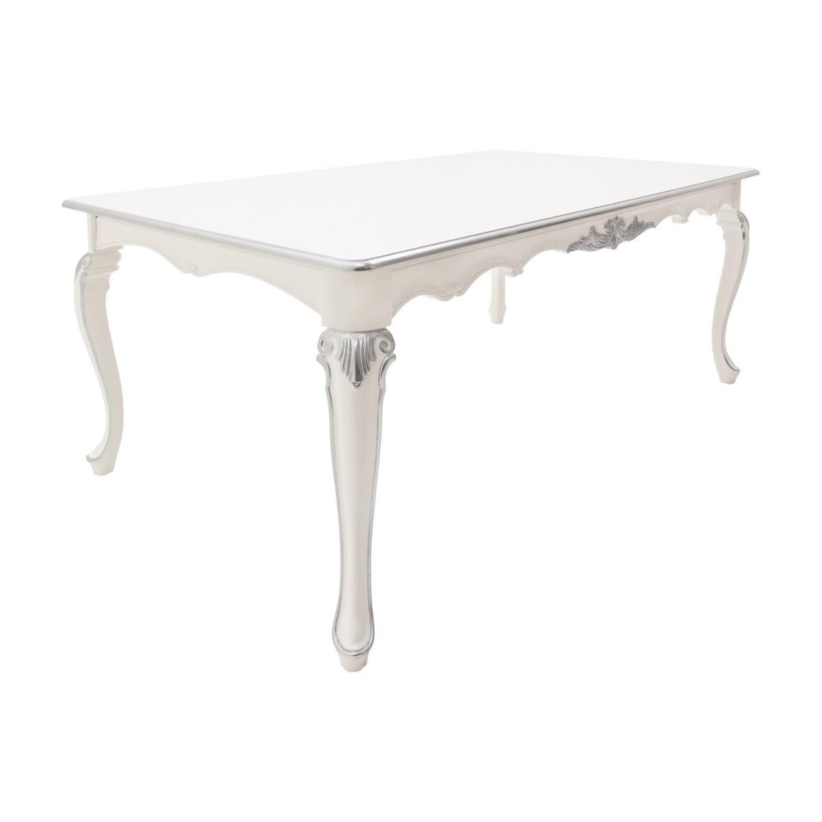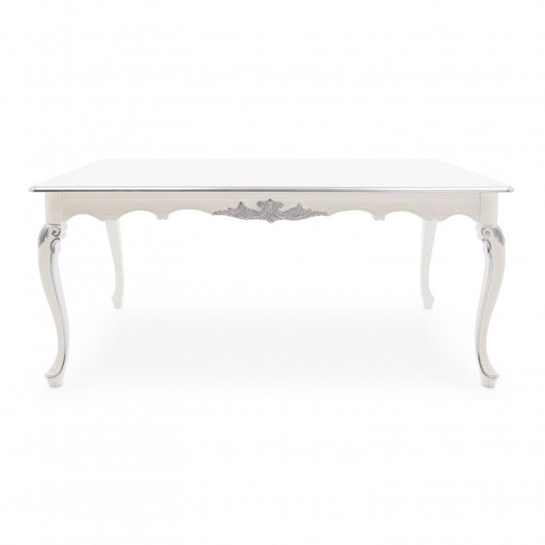 Refined rectangular wooden table in Venetian style, enriched with an elegant carving on the legs and side band. A gold or silver leaf lacquer finish is particularly suitable to enhance the carved design. It is also available in the version with extendable top.