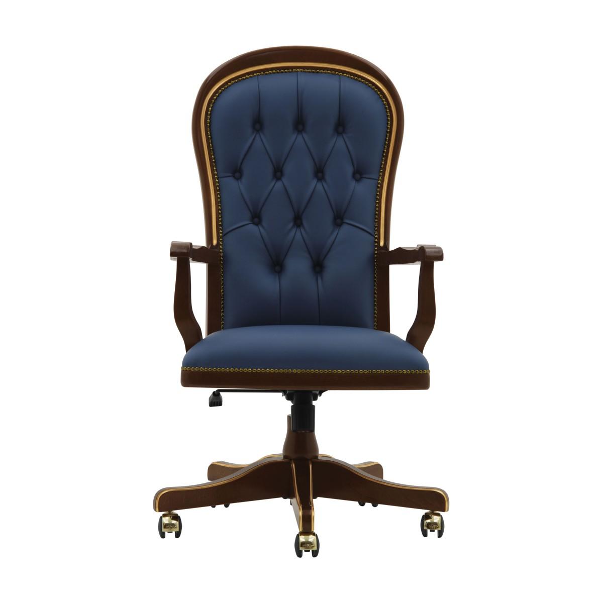 Classic style swivel armchair with beech wood structure. The seat height is adjustable from a minimum of 20 in. to a maximum of 23.25 in. The armchair is upholstered with webbing and superior quality foam. The deep buttoning is a tasteful optional that gives the product an elegant touch that does not go unnoticed.