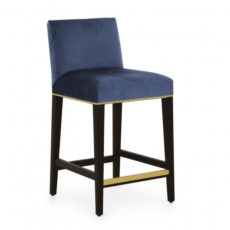 Refined Contemporary style stool with beech wood structure featuring simple and elegant lines. The seat is padded with webbing and superior quality foam. The stool has, as standard feature, a handle on the back so it is easier to move. The upholstery can be customized with nails, braiding, double welt or welt.