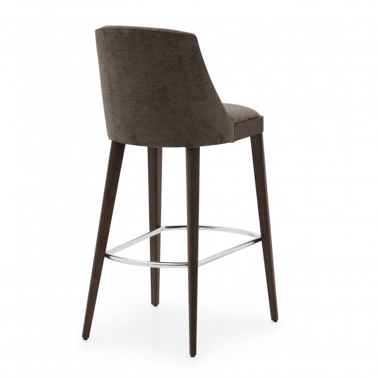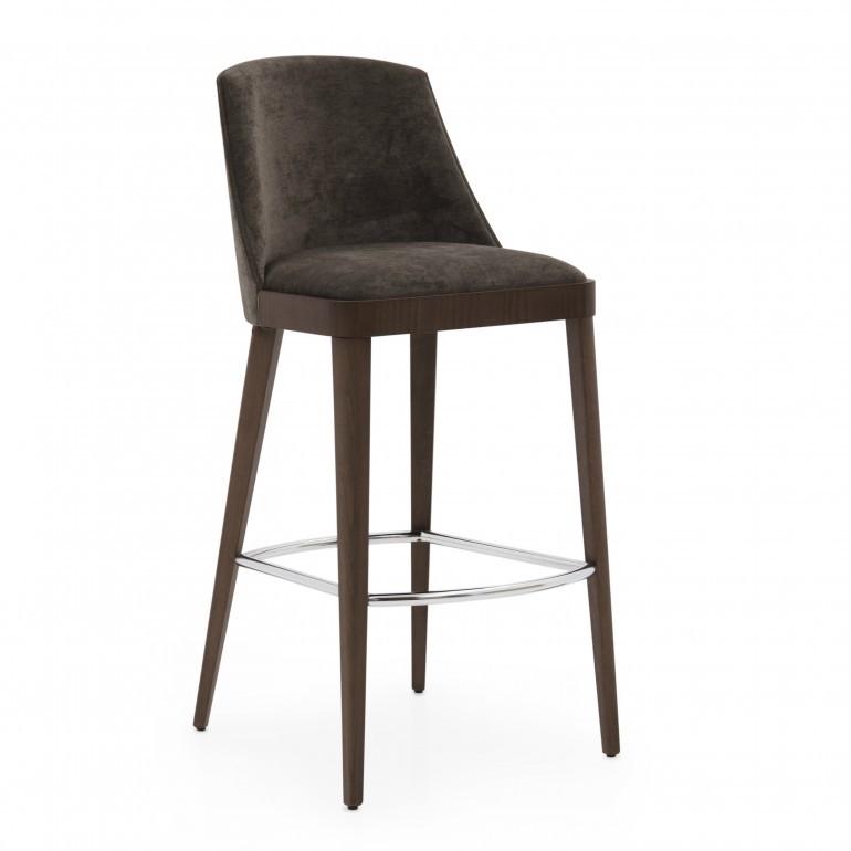 Comfortable Modern style beech wood barstool with simple and attractive lines. The seat is padded with superior quality foam applied to a wooden panel. The upholstery is trimmed with matching or contrasting piping; the metal parts can be selected from those available.