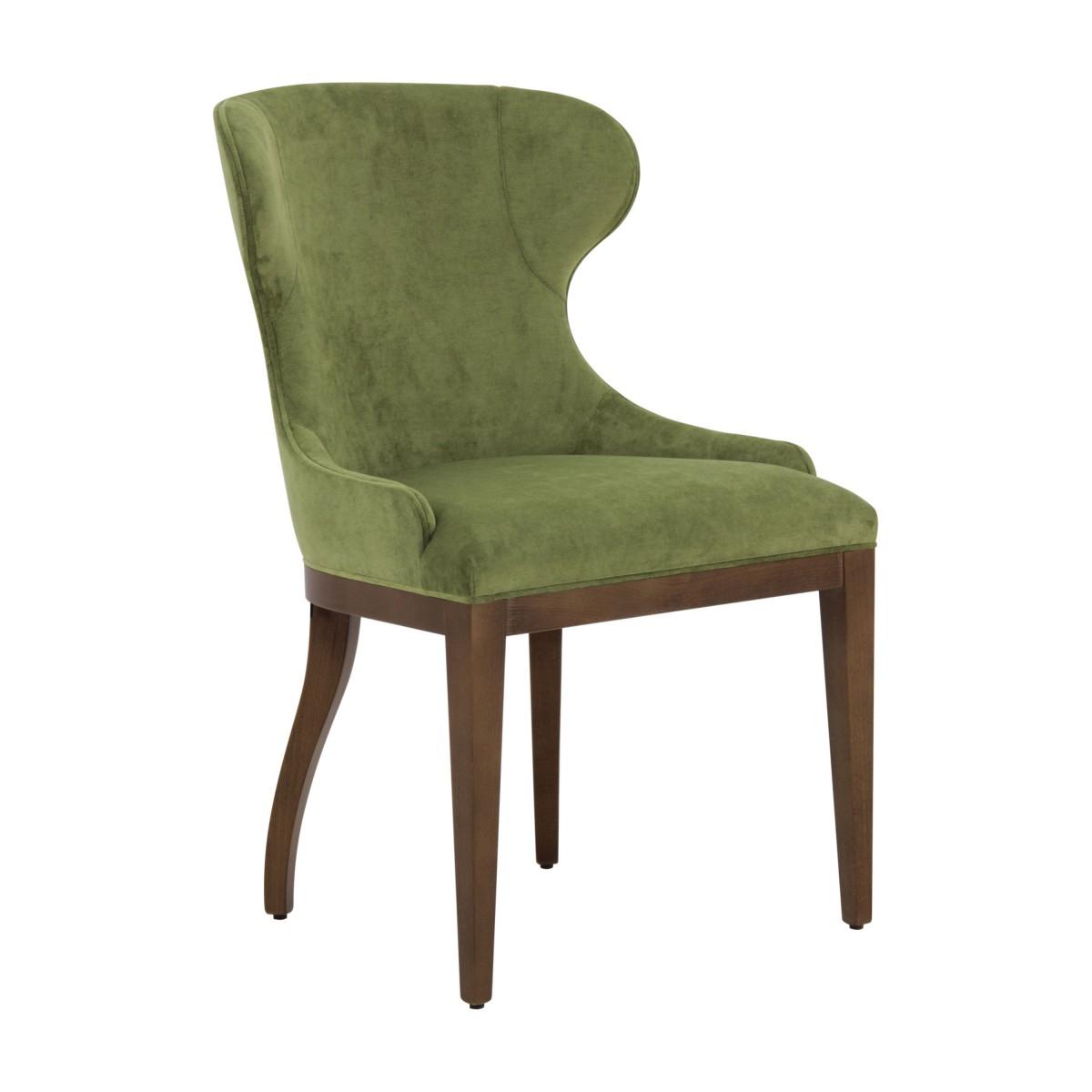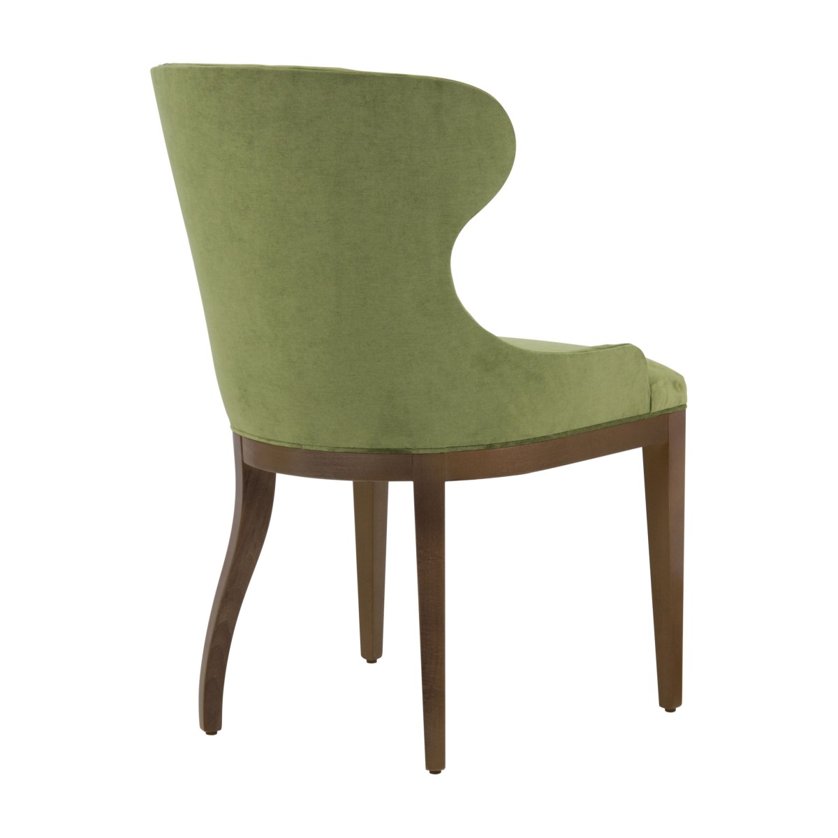 Very comfortable chair with markedly Contemporary lines and beech wood structure. The chair is upholstered with webbing, springs and superior quality foam and has a comfortable padded seat. Piping in contrast with the fabric of the chair is particularly suitable for this item.