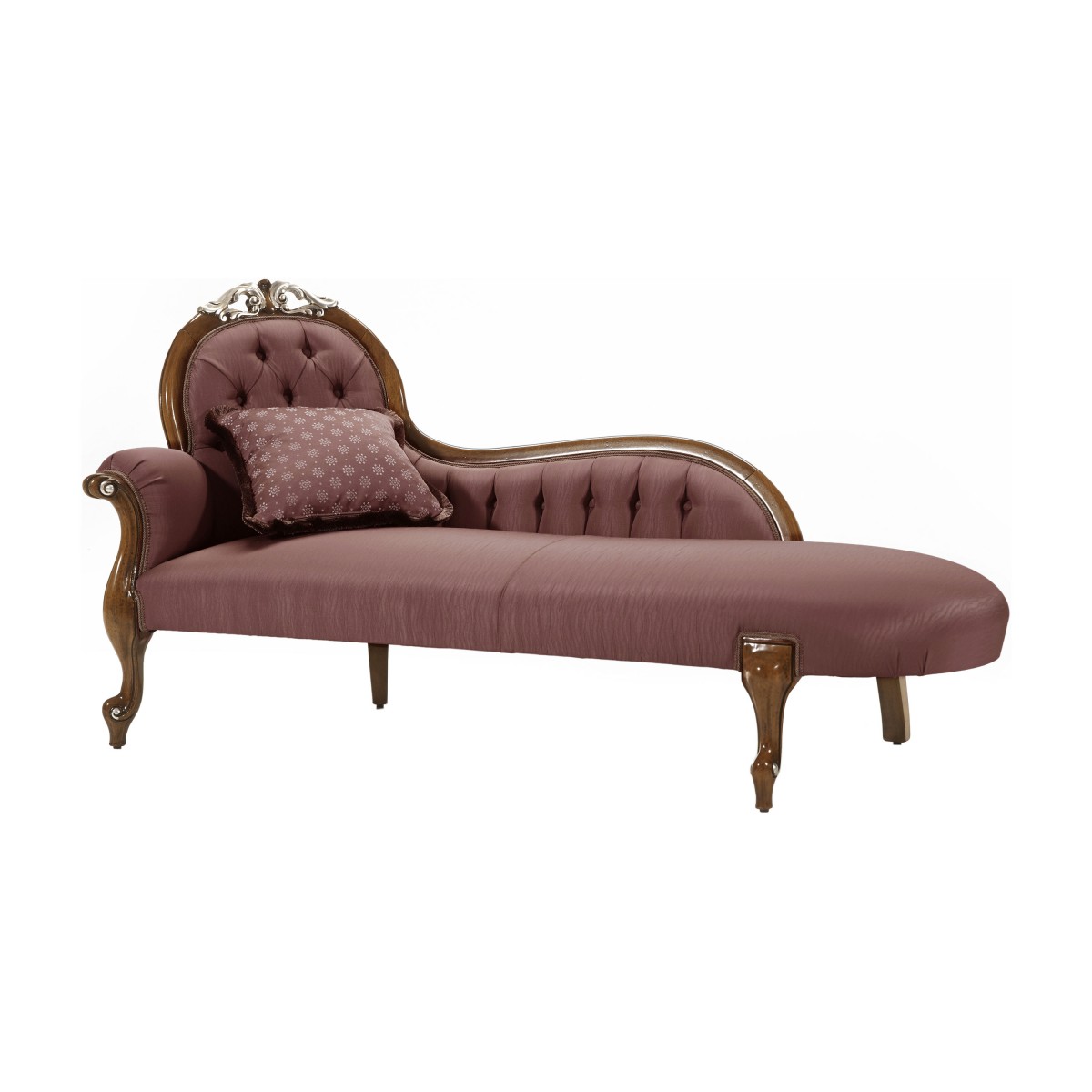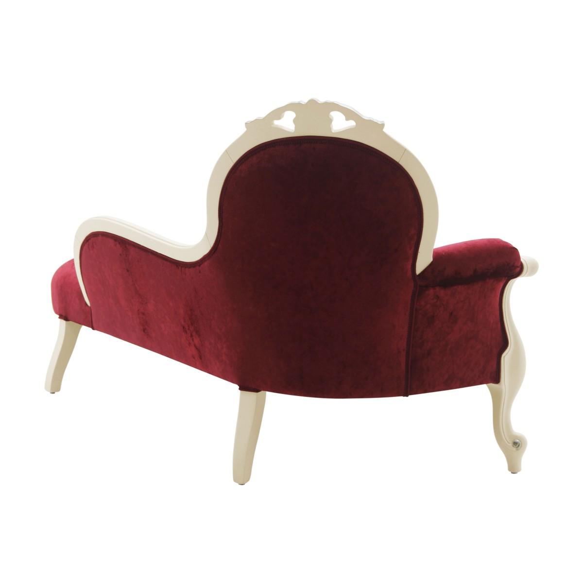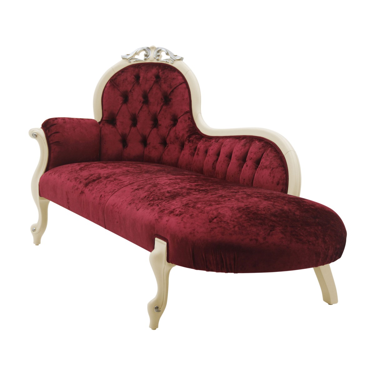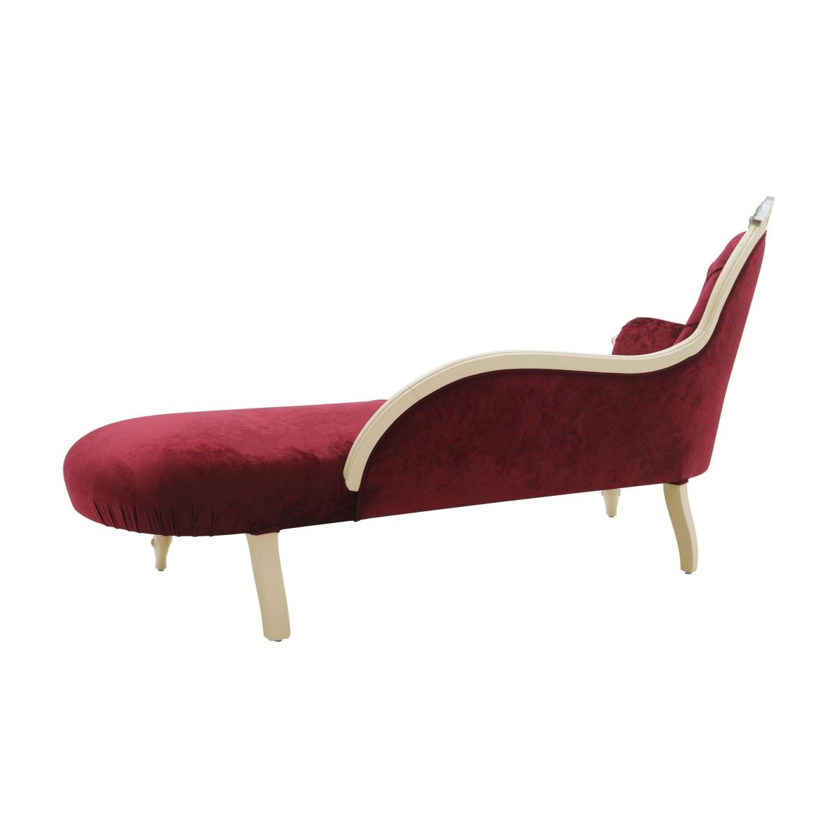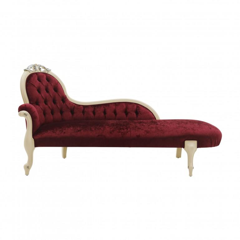 Refined Classic style chaise longue with beech wood structure enriched with several carvings that can be enhanced with a gold or silver leaf lacquer finish. The seat is padded with webbing and superior quality foam.The upholstery can be customized with nails, braiding, double welt or welt.