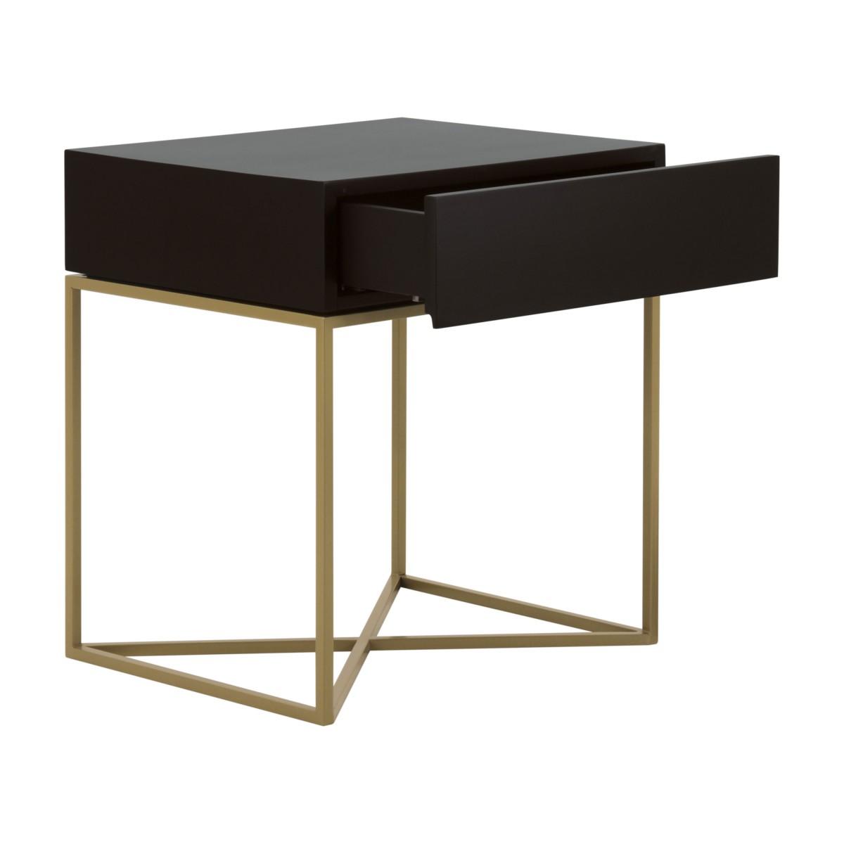 Contemporary style bedside table with powder-coated metal structure and wooden drawer. The top quality materials used make this item versatile and suitable for use in public or private spaces. This product has been exclusively designed by Sevensedie’s architects. The finish of the wooden drawers and the type of metal structure can be selected from those available.