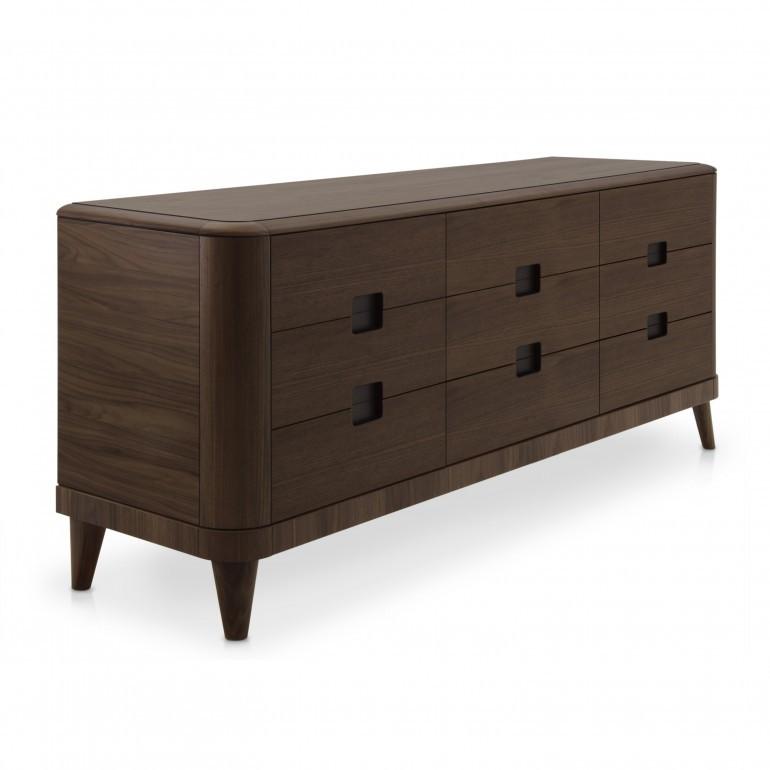Modern sideboard with distinctive lines, featuring nine drawers and walnut structure. This extremely versatile product has been exclusively designed by our architects and is suitable for many different settings.
