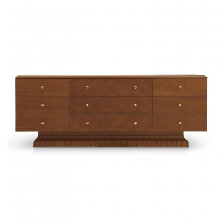 Contemporary large Italian chest of drawers in cherry wood with 9 drawers. Highly customizable.