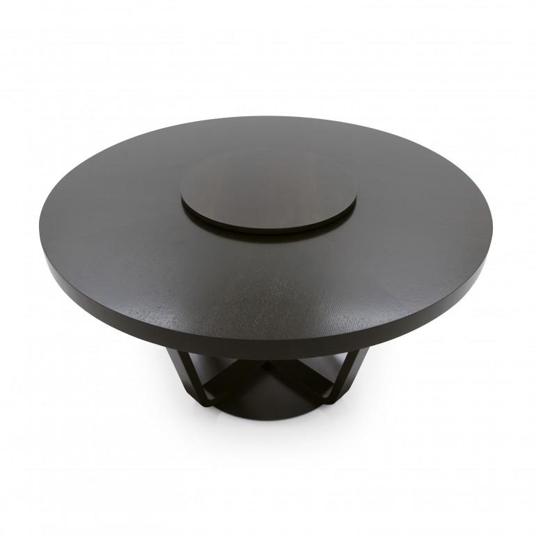 Attractive small round table with oak structure and markedly contemporary lines that can be easily combined with a number of items from our collections. As for all our products, the polished finish and the metal parts can be chosen from those available, even though for this product we recommend a finish that shows the natural grain of the oak. Optional 23.6 in diameter Lazy Susan available.