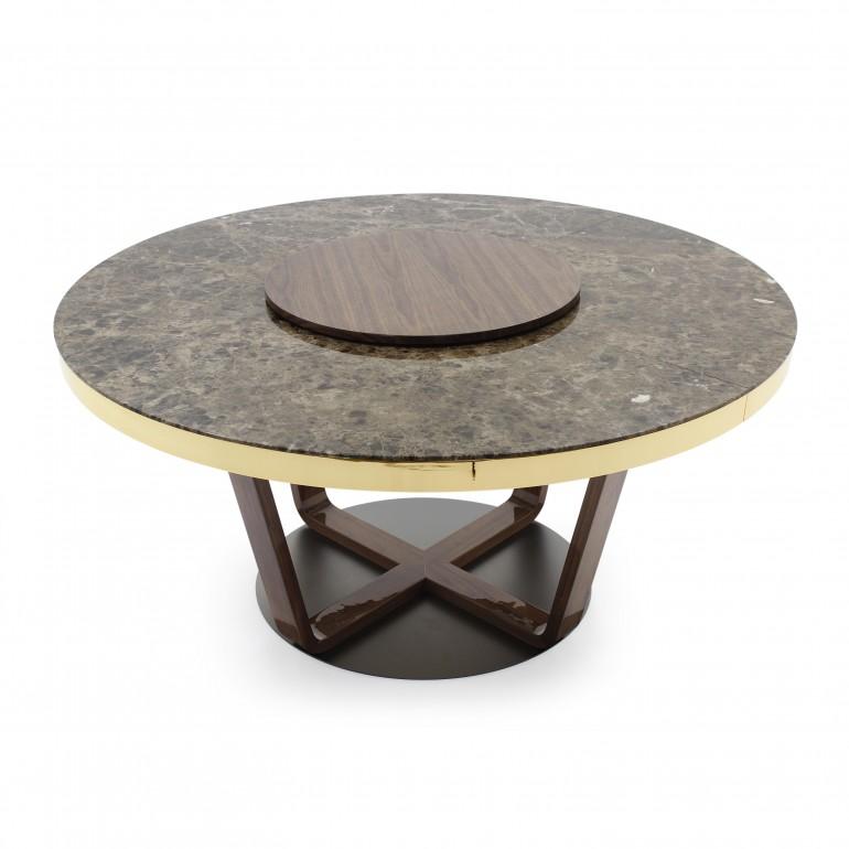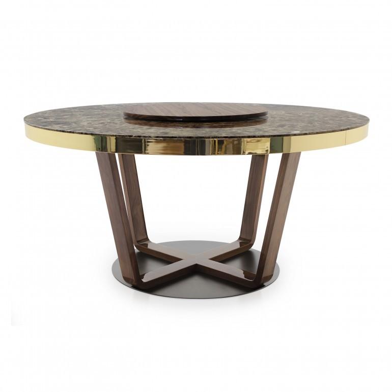 Elegant table with markedly modern lines, made with a combination of different materials that make it unique. The satin metal base, the main wooden structure and marble top held in a metal structure are all features that characterize the innovative nature of our product. Optional 23.6 in diameter Lazy Susan available.