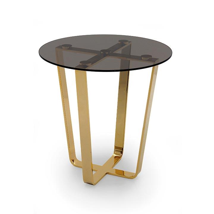 Modern round lamp table with metal structure and glass top. The top quality materials make this item versatile and suitable for use in public or private spaces.
