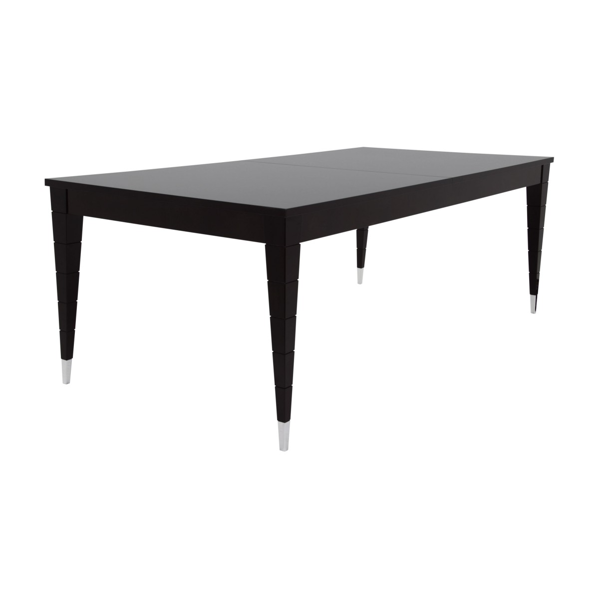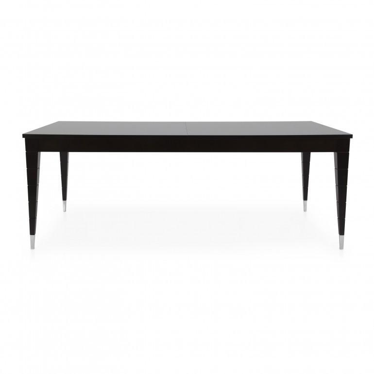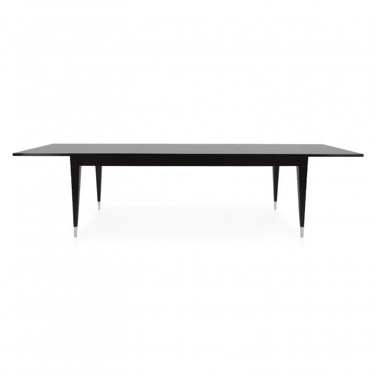 Contemporary extendible Italian dining table with double extentions. The Look contemporary extendible dining table, here featured in dark mahogany finish, is highly customizable in sizes and comes in several different finishes. On request the table’s legs can be embellished with precious metal tip legs available in gold plated or chromed finish.