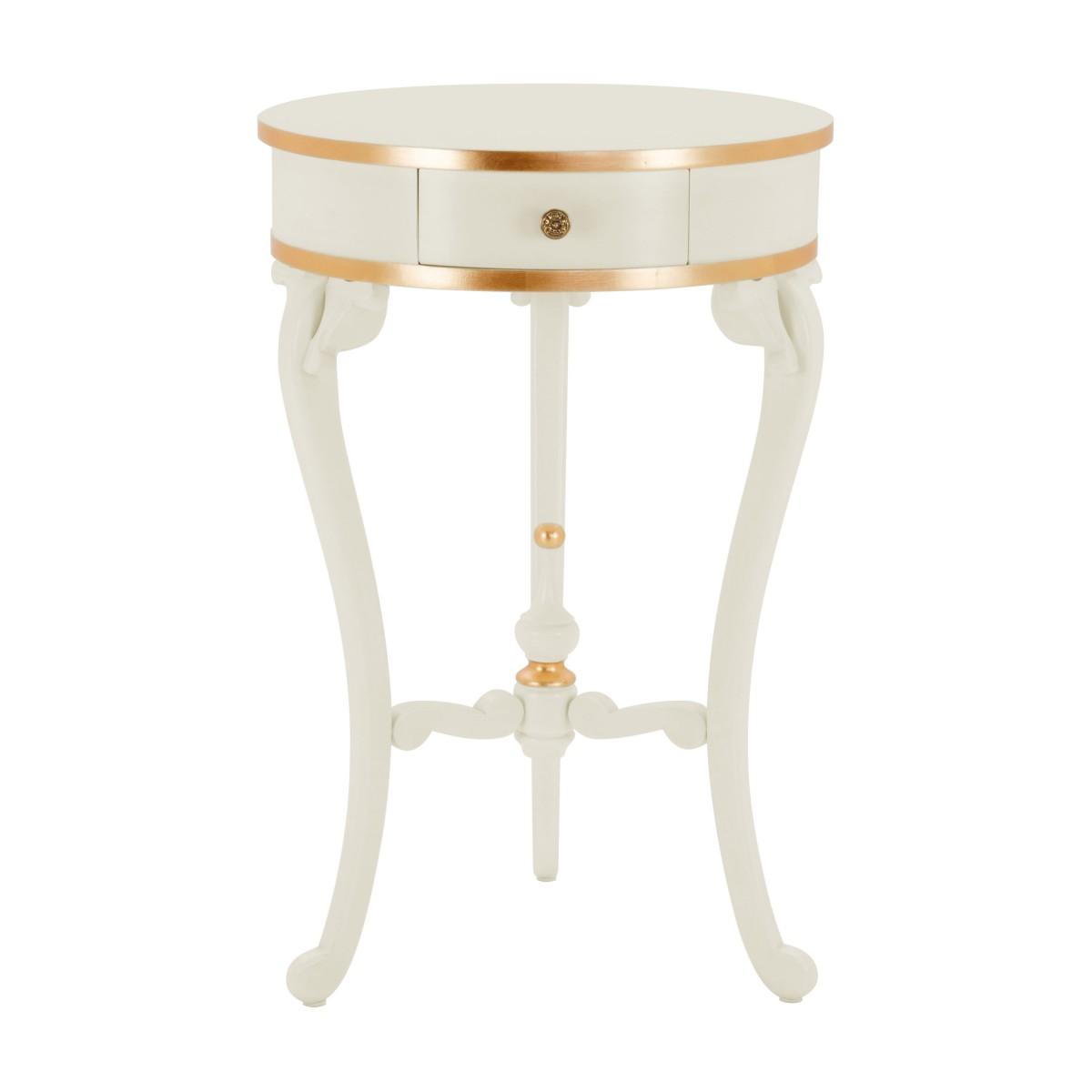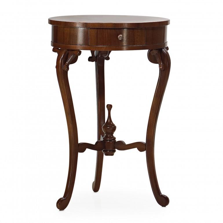 Small round table with beech wood structure that can be easily combined with a number of items from our collections. It has markedly classic lines that make it suitable as lamp table for many living rooms proposed in our collections. The distinguishing feature of this table is undoubtedly the spire beneath the top.