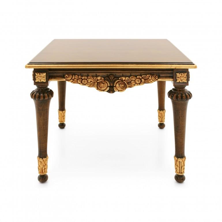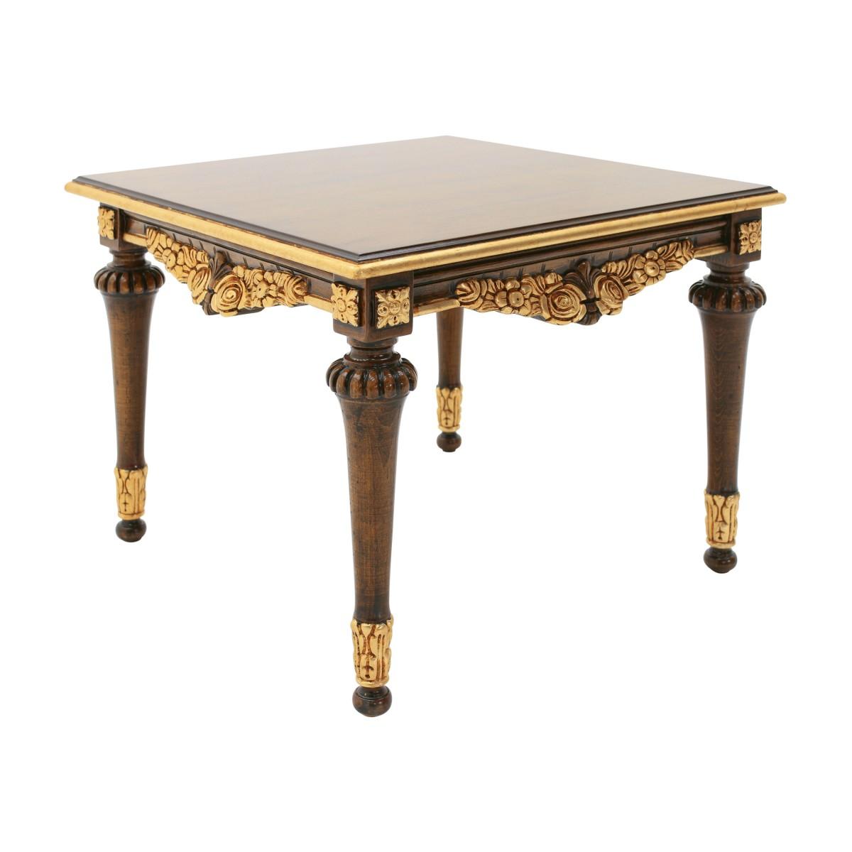 Baroque style square beech wood lamp table. The table features ornate and refined carvings on the side bands and legs that can be enhanced with a silver or gold leaf lacquer finish.
