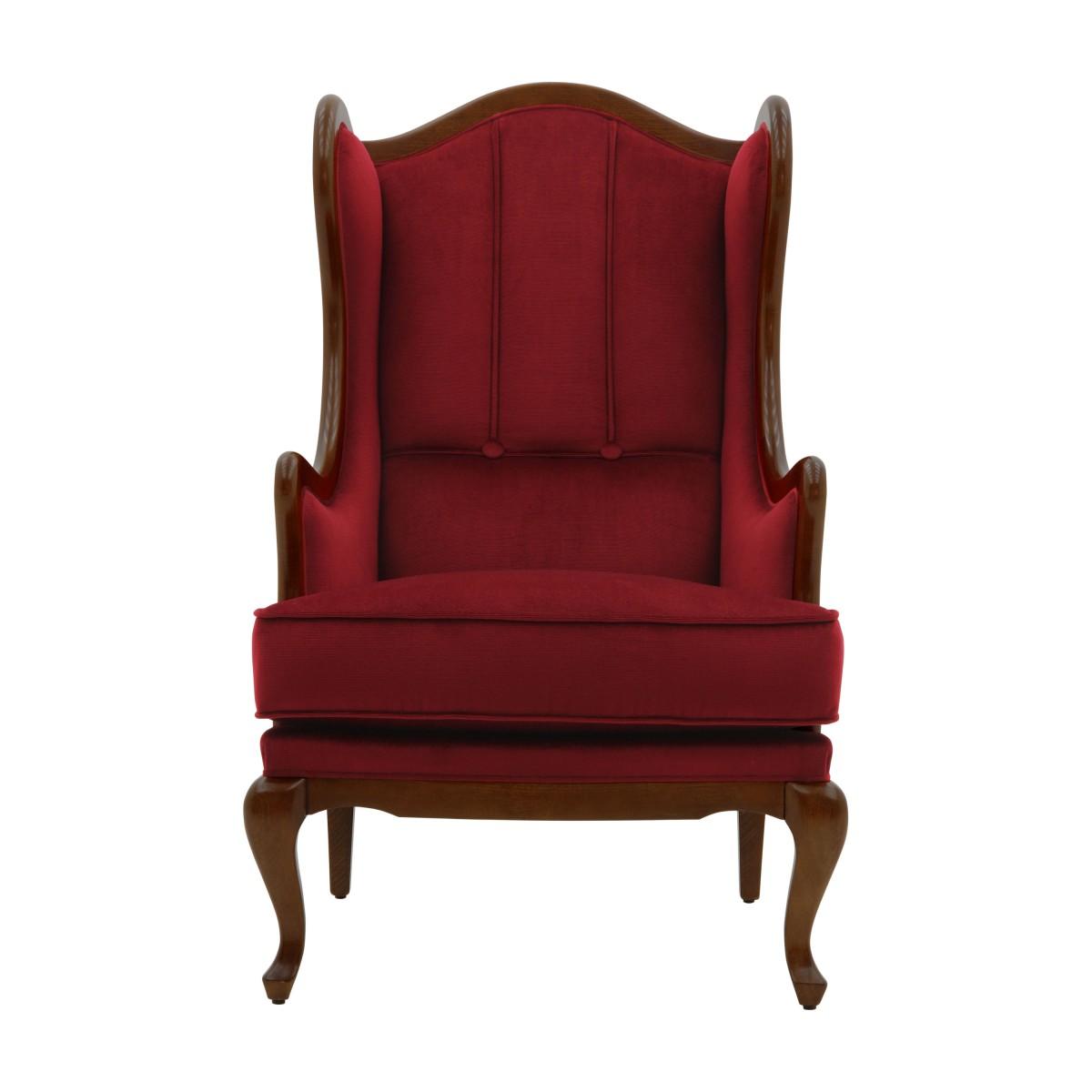 Elegantly shaped classic style armchair with wide beech wood structure with comfortable seat cushion and cushioned back, both padded with superior quality foam. The upholstery is trimmed with matching or contrasting piping. The stitching on the back creates a unique and unmistakable style.