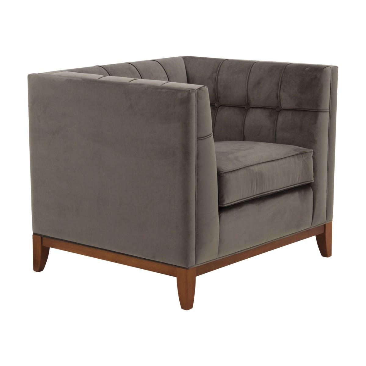 Comfortable armchair with markedly contemporary lines. The back features very original deep buttoning, which lends the products a certain lightness and well-defined identity. The armchair is upholstered with webbing and superior quality foam and has a comfortable padded seat cushion. Contrasting colored piping is particularly suitable for this item.