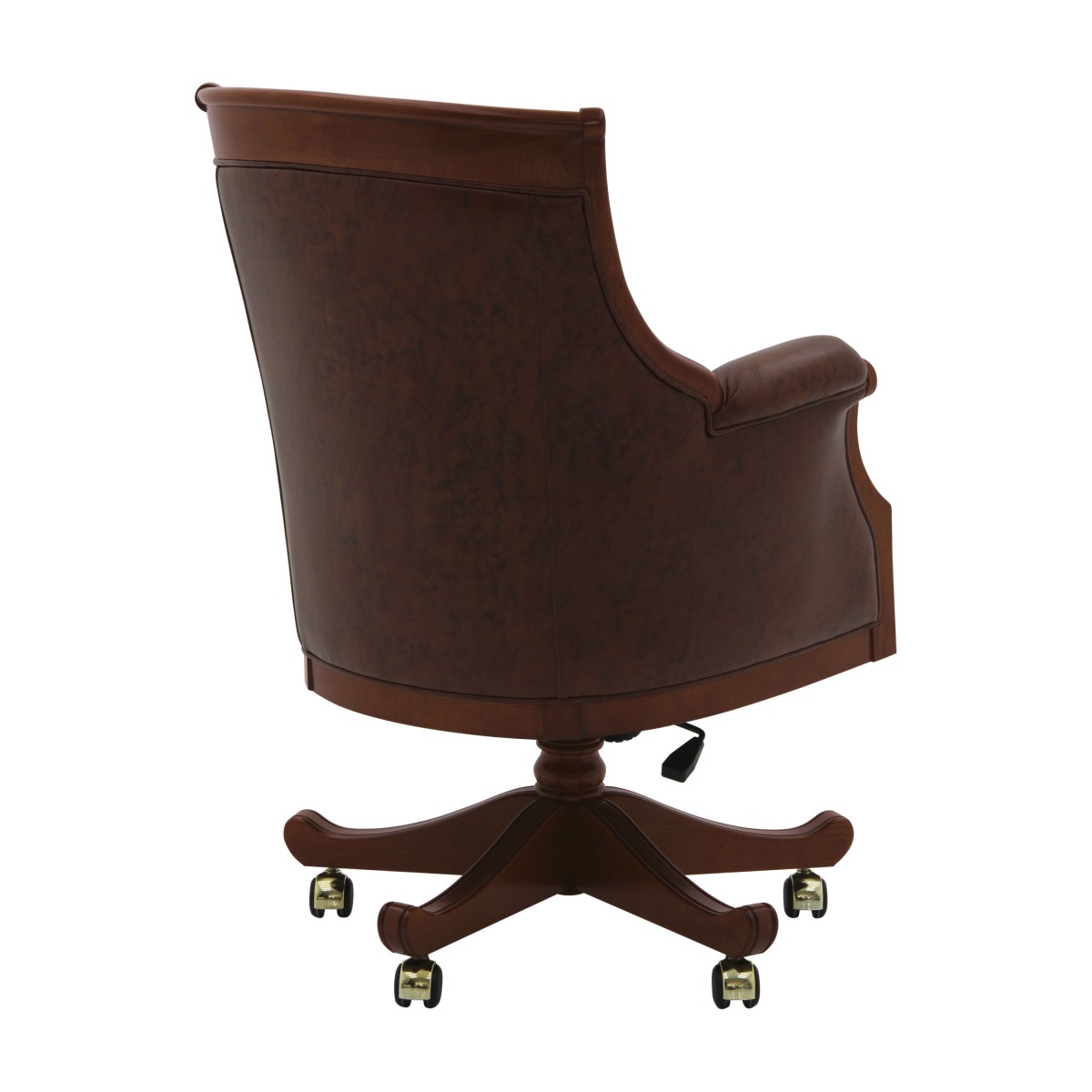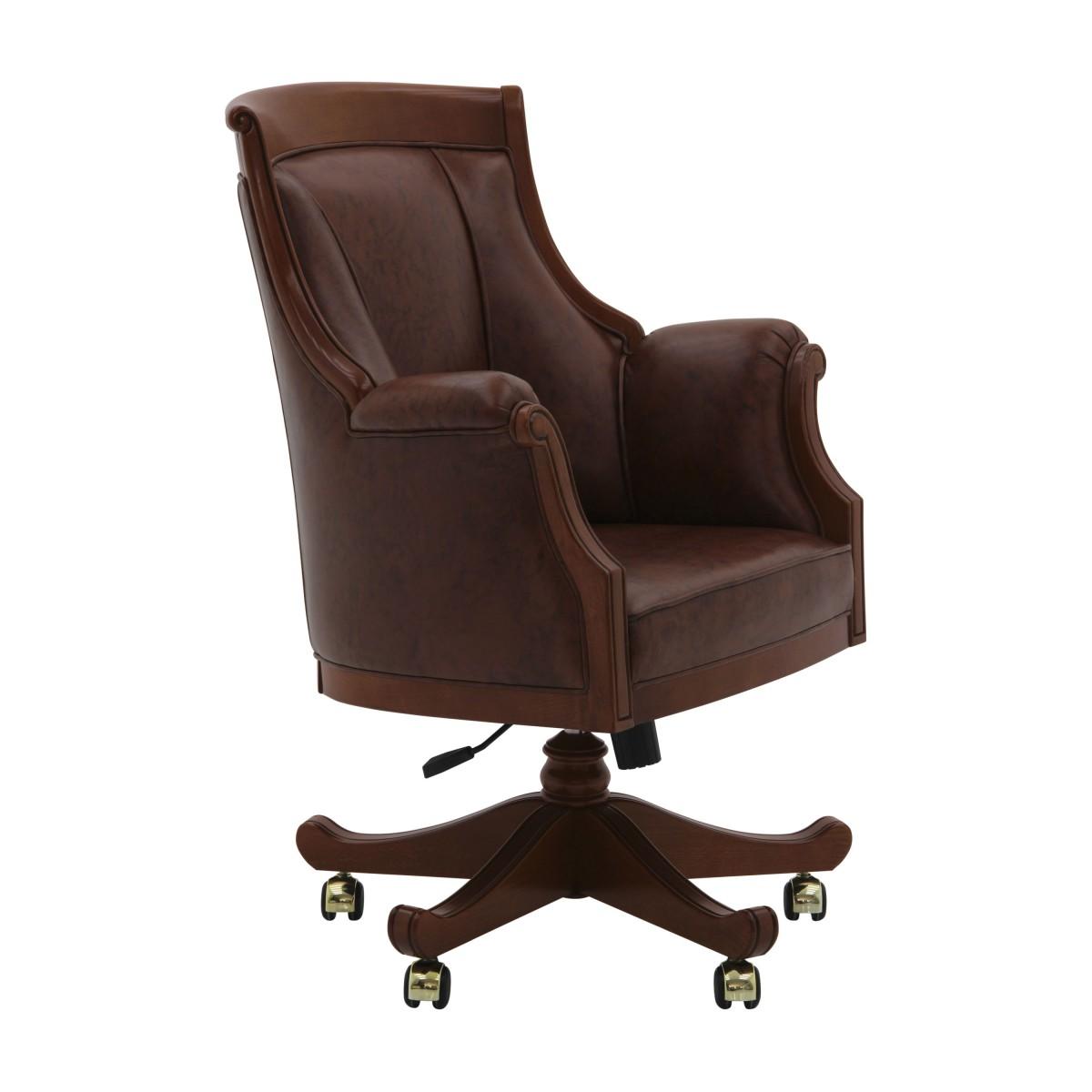 Classic style swivel armchair with beech wood structure. The seat height is adjustable from a minimum of 20.5 in. to a maximum of 23.6 in. The armchair is upholstered with webbing and superior quality foam. The seams along the back are the feature that distinguishes this armchair from all the other Sevensedie products.