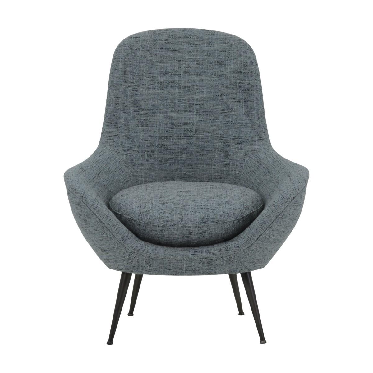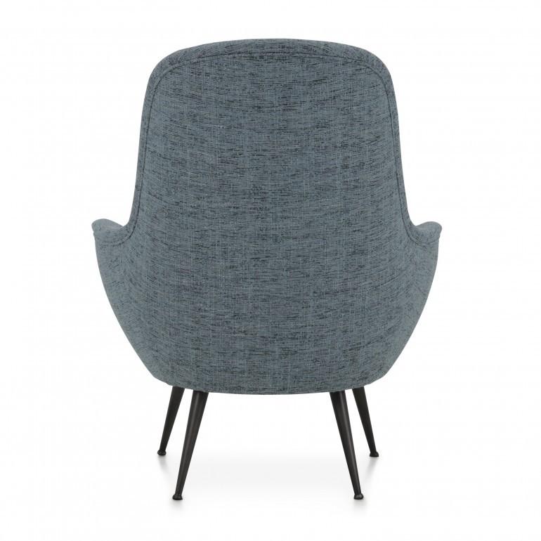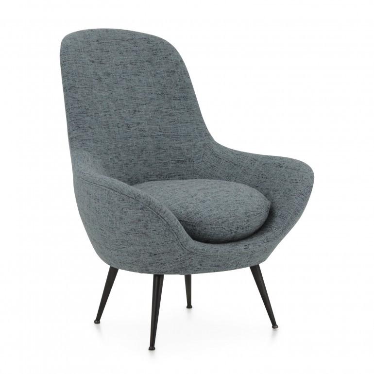 Comfortable armchair with markedly Contemporary style and particularly cocooning lines. The armchair features metal legs and is upholstered with webbing and superior quality foam and has a comfortable padded seat cushion. Piping in contrast with the fabric of the chair is particularly suitable for this item.