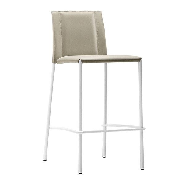 Silvy stool with four leg frame in chrome or lacquered metal. Seat and back upholstered in hide.