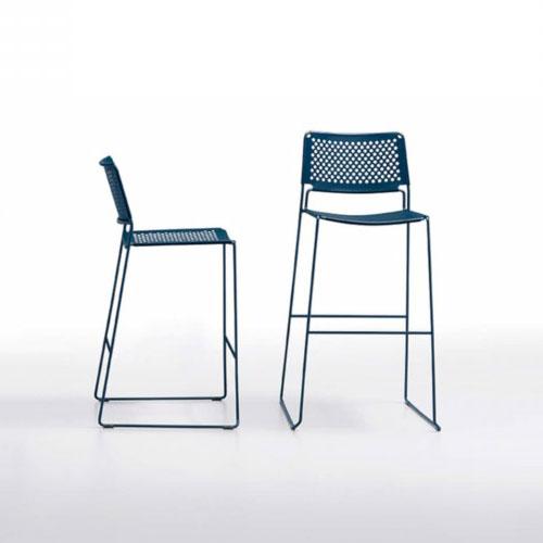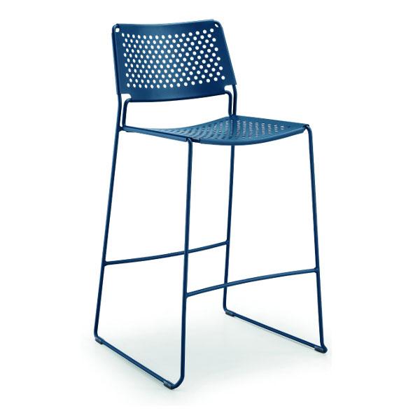 The Slim stool in version H65 or H75 with sled metal base is available for indoor and outdoor use.