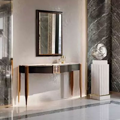 Mirror, internal frame in canaletto walnut and external frame black lacquered finished. Shown with 2016-25 console.