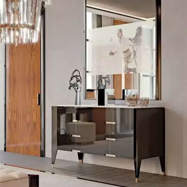 Mirror, glossy black lacquered frame. Possibility to realize with Magic Mirror TV, price on request. Shown with 2017-39 chest of drawers.