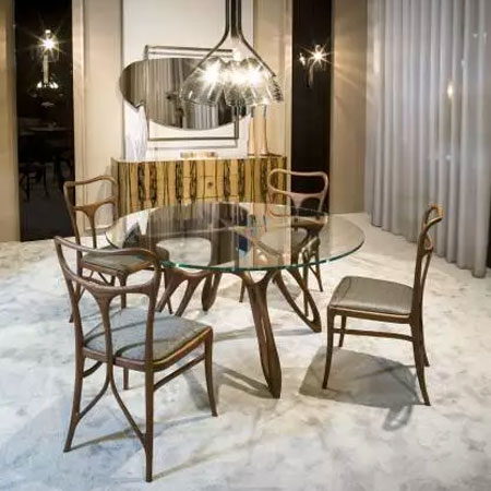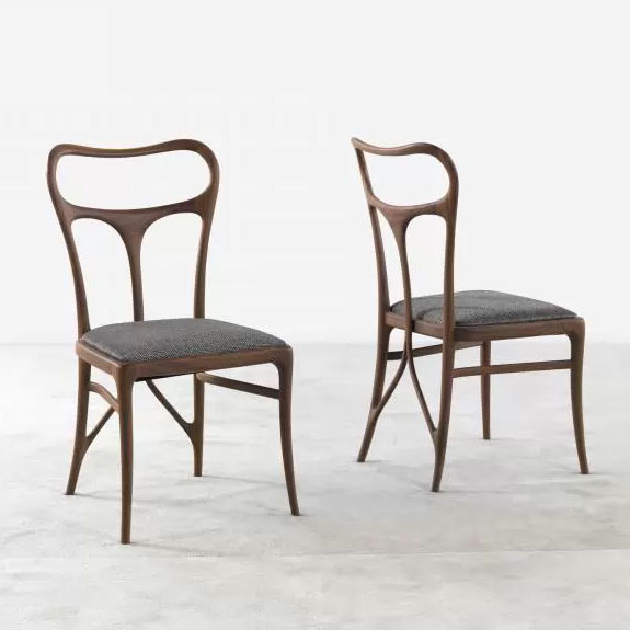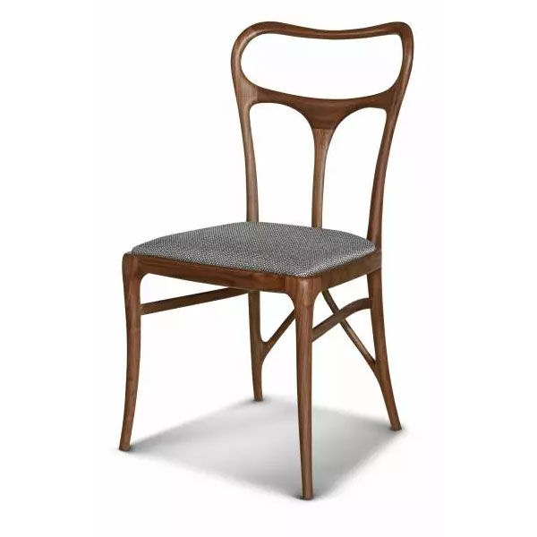 Chair in solid Canaletto Walnut matt finished, covered with fabric.