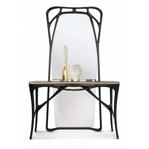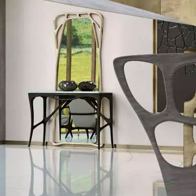 Mirror in grey stained solid Ash. Shown with Febe console.
