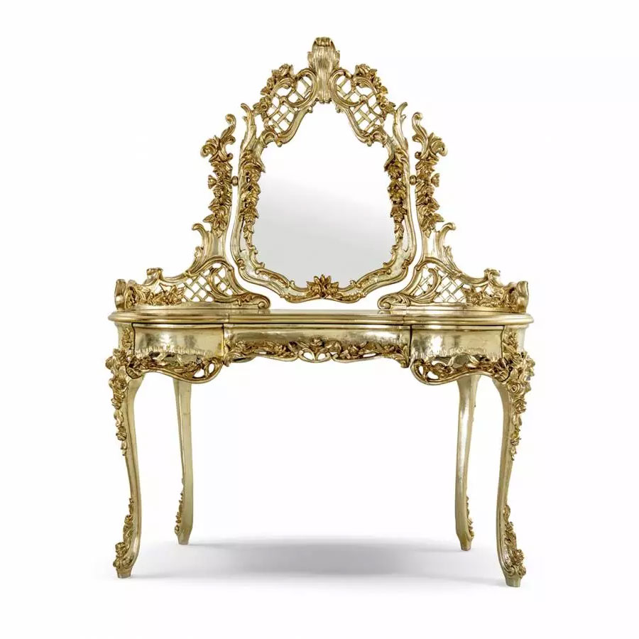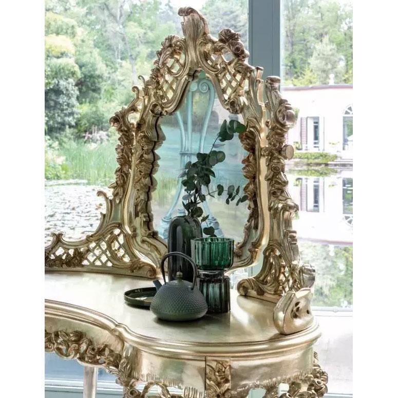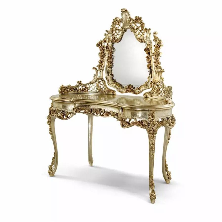 Dressing table with mirror in carved wood, Silver Gold leaf finish.