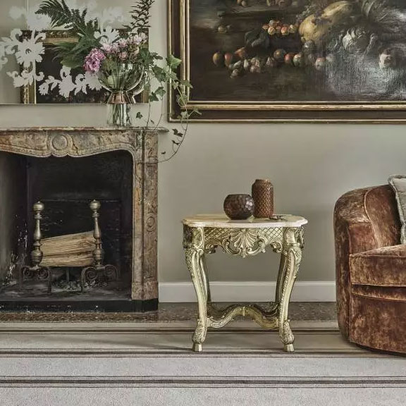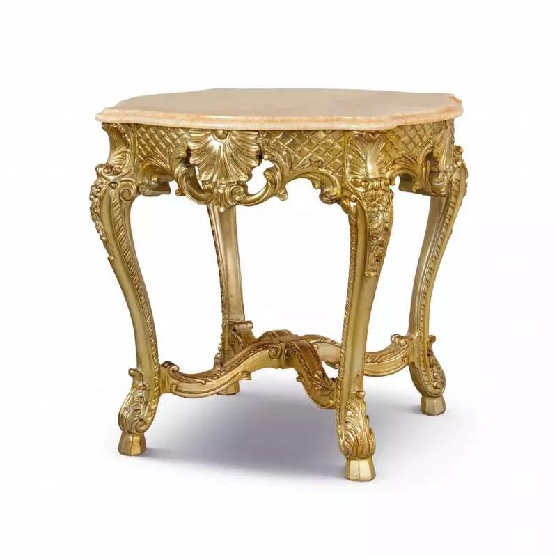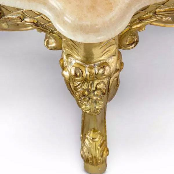 Side table with marble top Honey Onyx, carved base with leaf finish Silver Gold.