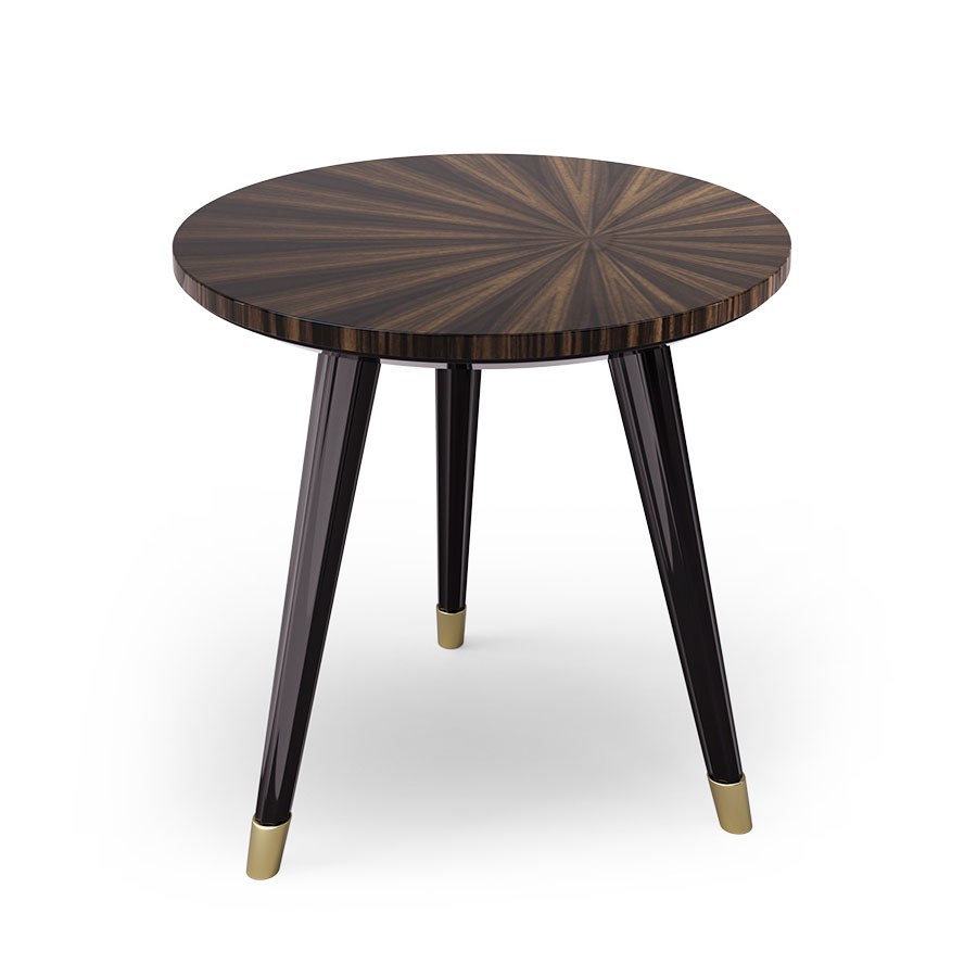 E03040 A charming addition to a contemporary living or lounge area, the Andrè Side Table features an inlaid top in Macassar Ebony wood for an uncommon look. Inspired by mid-century modern styles, the table sits on three flared legs that taper towards the ground. Thanks to its subtle surface, the table is best left with minimalist accents. Macassar Ebony, solid wood; 21.65″ diameter x 21.65″ h.