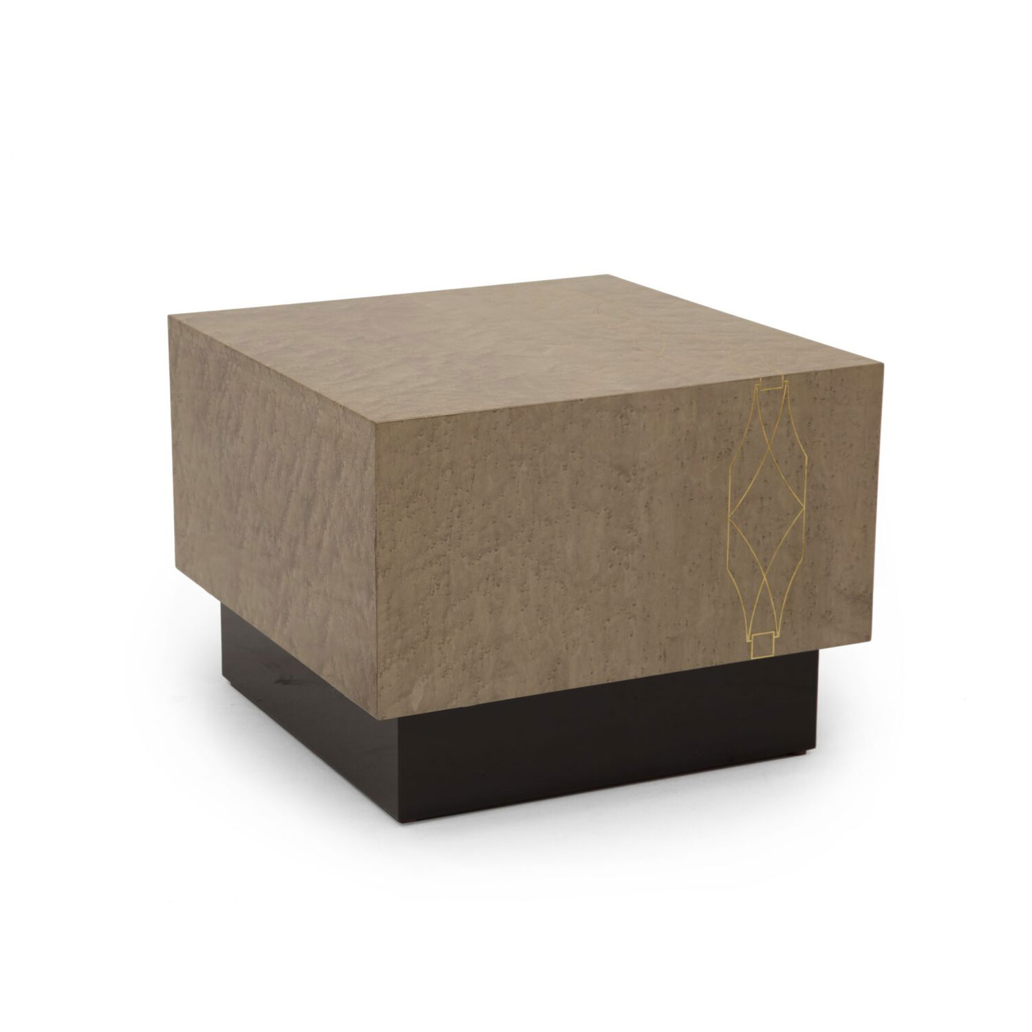 A03020 Square side table in Bird’s eye maple clay color, metal elements, solid wood; 17.7″ x 17.7″ x 13.8″ h.