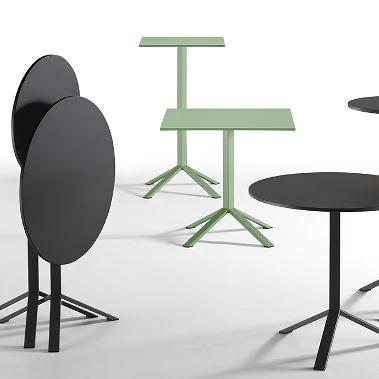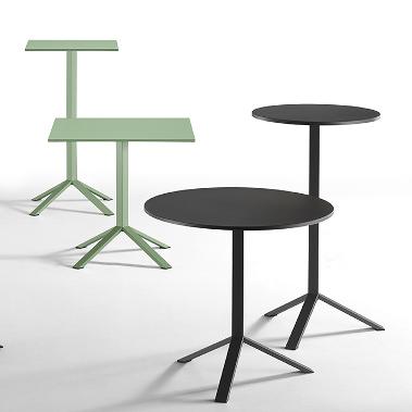 Bistro base with three-way base in steel suitable for outdoor use. Available flipping mechanism with surcharge.