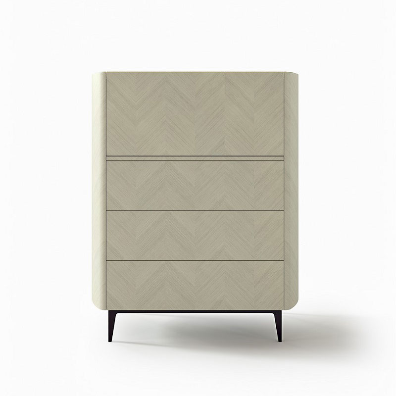 Sideboard with geometric inlay in light Tay (CR70BM) with flap and drawers, interior in Canaletto walnut, internal drawer fronts covered in leather. Top in matt green Lepanto marble and leather profile.