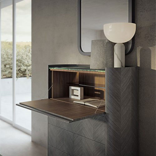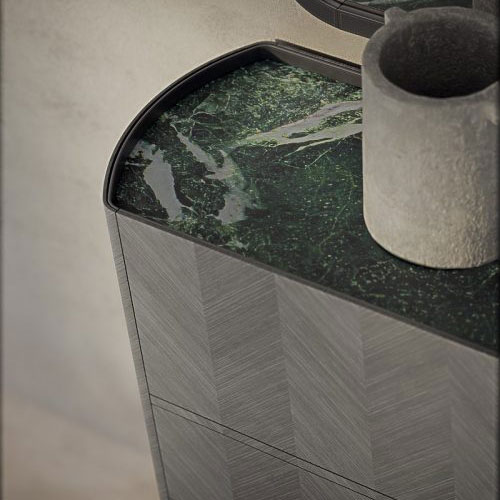 Also available with inlay in dark Tay (CR71BM), and Canaletto walnut (CR72BM). Top in various types of marble, internal lighting on request.