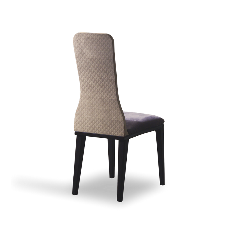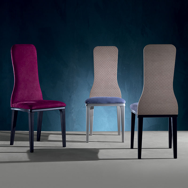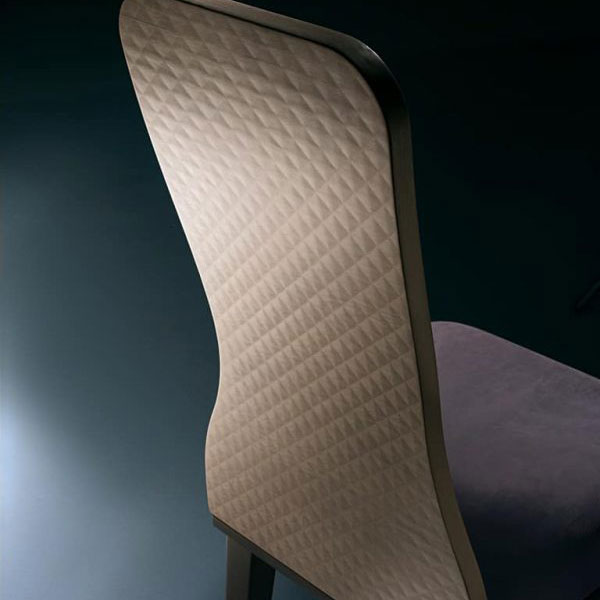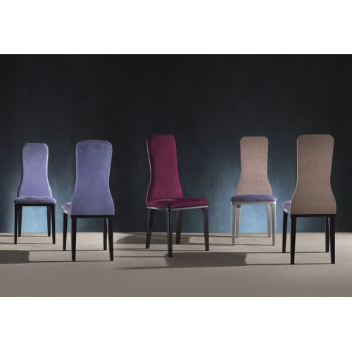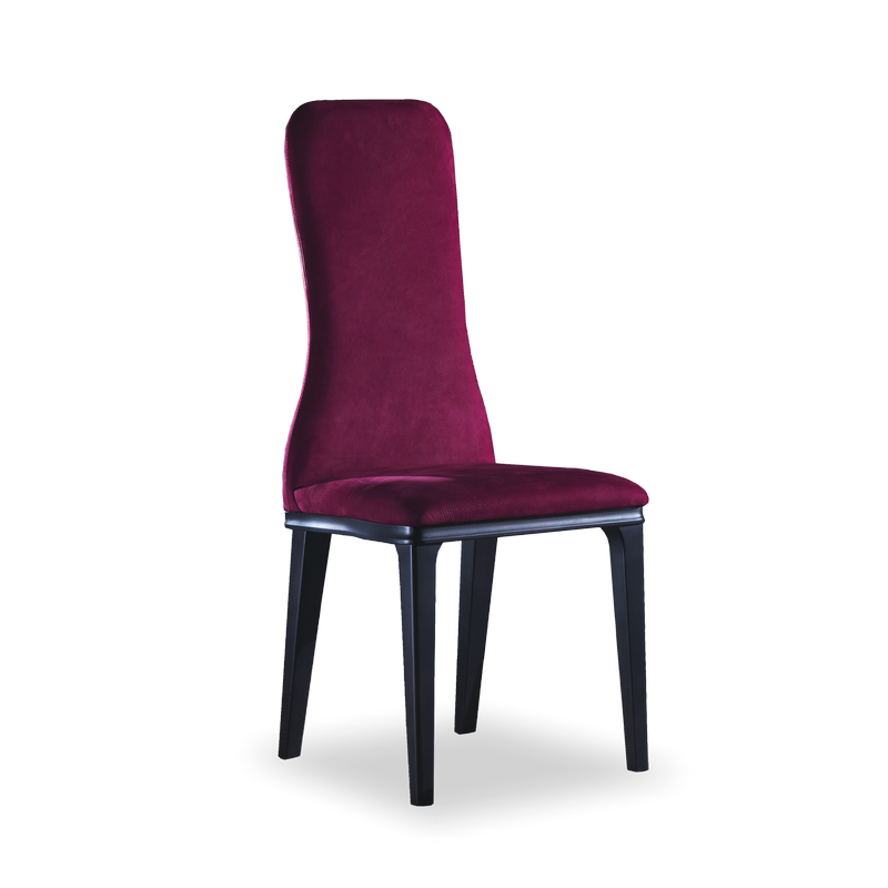 Chair with anatomic structure and back in solid wood. Available in two versions: with padded back and seat (SE55) or with padded seat and back in wood with 3D drawing plate (SE56). The structure of the legs is available in dark sycamore finish (F123), light sycamore finish (F122).