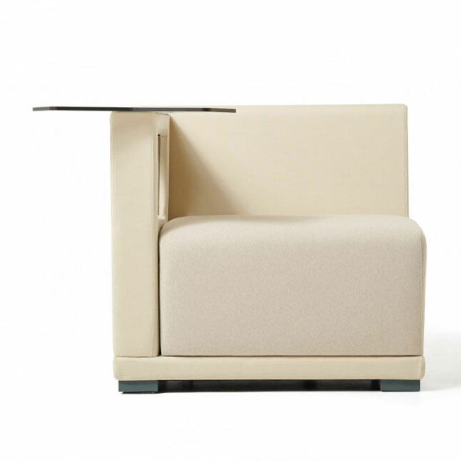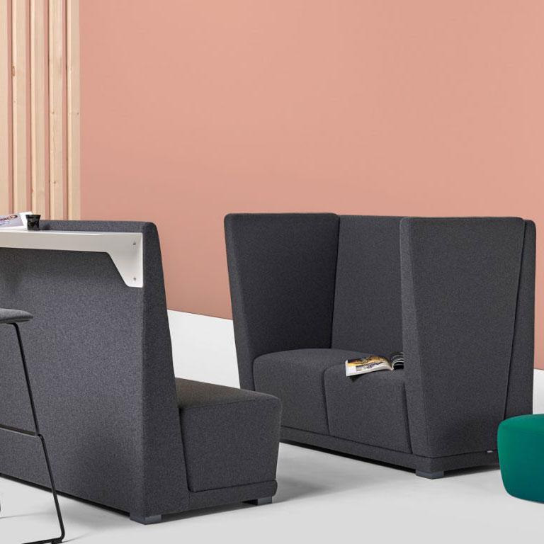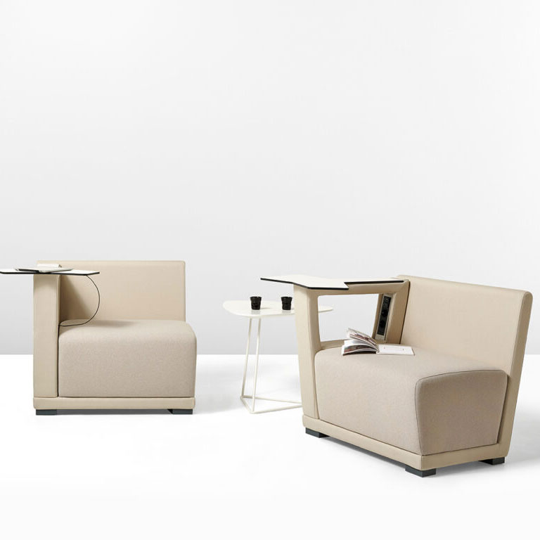 as well as the choice of two different back heights, the higher being perfect to create “parlours” and meeting areas where privacy is important. The armrests can have electric power points making this collection technological and interactive, perfect for modern lounge and waiting situations.