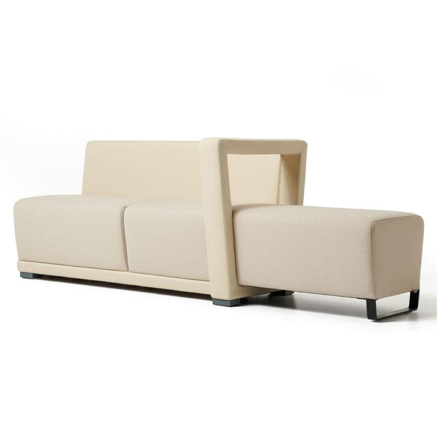 Sofa: A concept with infinite possibilities. Wood and polyurethane foam interiors. Includes armchair, two-seater sofa, and a series of elements of various sizes and heights, straight or curved, which can be joined together to form original compositions suitable for any type of space and layout. Polyurethane foam padding and wooden feet.