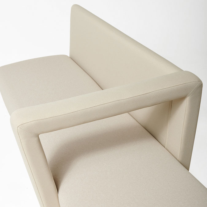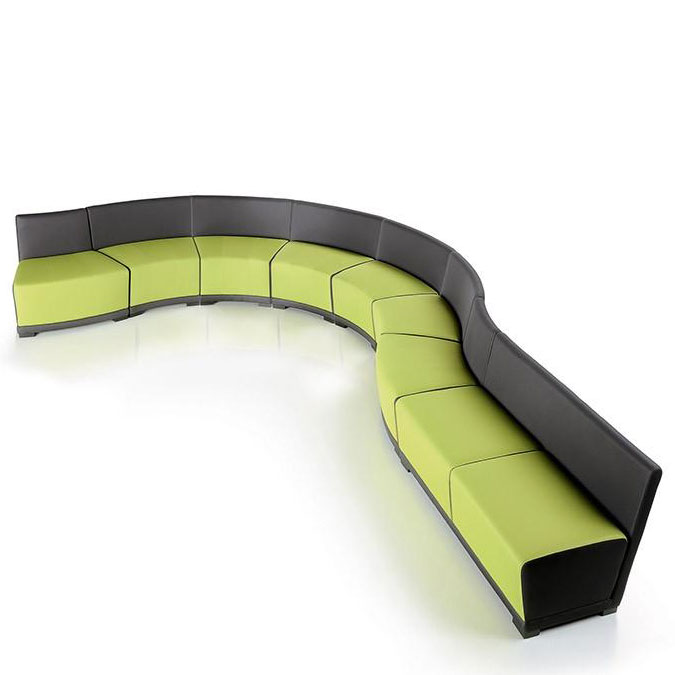 It is a cutting-edge technical solution, able to shape itself with absolute fluidity to the environment for which it is chosen, taking on either straight or curved forms, and it can be equipped with a built-in writing tablet and USB ports. It develops into a dynamic game of full and empty spaces between the upholstery and the armrests.
